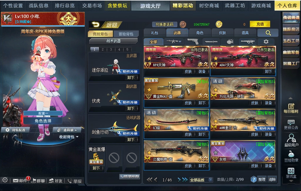 🎀【小鸢租号】🎀极品+联1双传说天神旅人降临典藏皇家m4!满配赛博剑鱼!伏虎迷你派拉+幻锋格挡