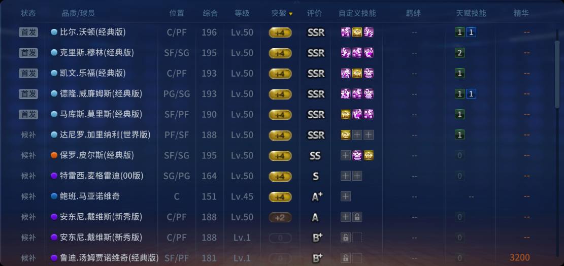 美航:娱乐号🌺穆林,威廉姆斯,皮尔斯,比尔沃顿,乐福,加里纳利,娱乐球星224鲍班。配球星技能足。