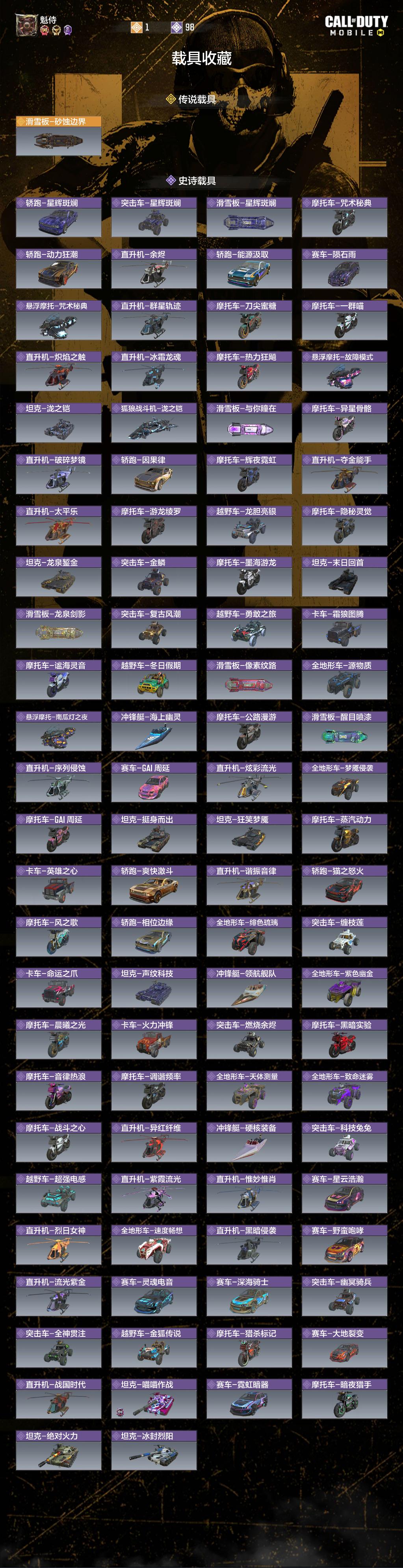 - 传说载具: 1