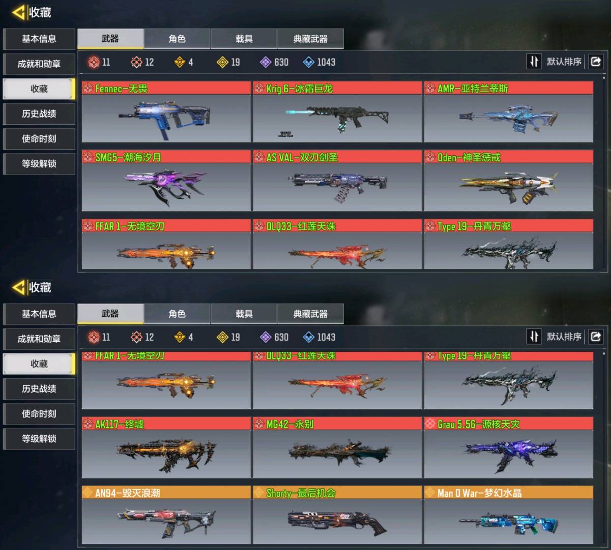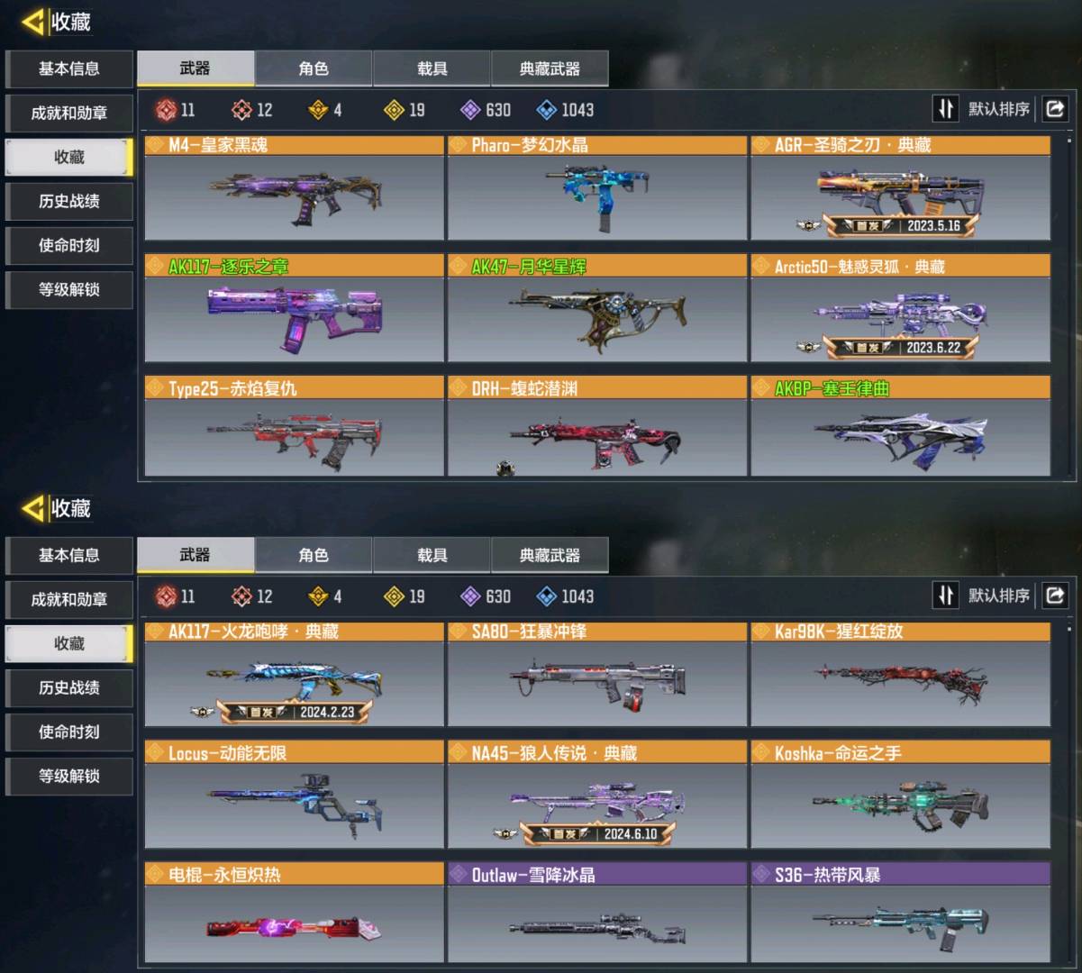 - 满级神皮(枪+角色): 13