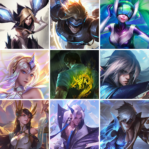 【重要皮肤】北极星使者沃里克至臻 星之守护者艾克至臻 海之歌萨勒芬妮至臻 幻灵战斗猫金克丝至臻 青花瓷拉克丝至臻 女帝黛安娜至臻 太空律动璐璐至臻 魔女婕拉至臻 魔女乐芙兰至臻 奥术师佐伊至臻 未来战士卢锡安至臻 真实伤害亚索至臻 真实伤害赛娜至臻 星之守护者索拉卡至臻 灵魂莲华提莫至臻 灵能特工伊泽瑞尔至臻 福牛守护者菲奥娜至臻 源计划逆流塞拉斯至臻 源计划阴劫至臻 王国机神玄武盖伦至臻 暗星墨菲特至臻 神龙尊者炎龙瑟提至臻 黑夜使者凯隐至臻 神龙尊者均衡之龙沃利贝尔至臻 征服者贾克斯至臻 飞升战神潘森至臻 焰执事布兰德至臻 KDA二代卡莎至臻 绒毛菲兹至臻 绒毛菲兹2022至臻 腥红之月亚托克斯至臻 腥红之月亚托克斯2022至臻 未来战士锤石至臻 未来战士锤石2022至臻 灰烬守护者慎 灰烬骑士莫德凯撒 灰烬骑士派克 海克斯科技瑟庄妮 海克斯科技雷克顿 海克斯科技斯维因 海克斯科技吉格斯 海克斯科技嘉文四世 海克斯科技阿木木 海克斯科技拉莫斯 海克斯科技魔腾 永恒之森奥恩 暗星科加斯 黎明使者卡尔玛 恐惧新星德莱厄斯 零之枪骑赫卡里姆 摄魂使者薇恩 胜利女神娑娜 胜利之王泰达米尔 养蜂人辛吉德 勇敢的心德莱厄斯 电玩女神厄运小姐 电玩勇者锐雯 电玩女神阿狸 星之守护者伊泽瑞尔 玉剑传说无影 玉剑传说舞剑仙 神凰行者幽羽玄凰萨勒芬妮 神凰行者烈羽焰凰霞 星之守护者佐伊 灵能特工易 龙的传人李青 碧玉之牙卡西奥佩娅 北辰之威内瑟斯 南天之怒沃里克 定海神珍孙悟空 司马懿仲达 金猪烈焰瑟庄妮 烈焰美人薇恩 王国机神青龙德莱文 王国机神朱雀蕾欧娜 王国机神苍狼瑟提 王国机神白虎贾克斯 王国机神玄武盖伦 福牛守护者安妮 福牛守护者厄斐琉斯 福牛守护者德莱厄斯 福牛守护者阿利斯塔 福牛守护者嘉文四世 福牛守护者菲奥娜 胜利机器人布里茨 胜利枪神卢锡安 甜心之翎洛 甜心宝贝安妮 觅心魔灵奥莉安娜 觅心女王艾希 觅心之翼奎因 觅心萝莉金克丝 觅心猫猫悠米 寒冬精灵璐璐 冰雪驯鹿波比 冰雪风暴希维尔 冬季仙境卡尔玛 持胡萝卜的雪人易 狂心冰王图奇 冰封王子蒙多 魄罗骑士瑟庄妮 平安夜女神娑娜 圣诞糖果棒厄运小姐 魅惑女巫厄运小姐 魅惑女巫莫甘娜 魅惑女巫崔丝塔娜 魅惑女巫伊莉丝 伯爵卡萨丁 大魔法锅布里茨 大魔王提莫 死亡誓约劫 死亡誓约维克托 灵魂收割者索拉卡 小恶魔菲兹 南瓜头王子阿木木 勇敢的心德莱厄斯 泳池派对凯特琳 泳池派对佐伊 泳池派对普朗克 泳池派对辛德拉 泳池派对奥莉安娜 泳池派对嘉文四世 泳池派对黑默丁格 泳池派对塔莉垭 泳池派对厄运小姐 泳池派对塔里克 泳池派对菲奥娜 泳池派对格雷福斯 泳池派对李青 泳池派对蕾欧娜 泳池派对雷克顿 电玩战魂赫卡里姆 御星魔矢艾希 克格汪 制胜金球拉莫斯 FPX薇恩 FPX李青 FPX墨菲特 iG卡蜜尔 iG洛 iG卡莎 iG艾瑞莉娅 iG菲奥娜 SSG纳尔 SSG伊泽瑞尔 SKTT1娜美 SKTT1艾克 SKTT1阿利斯塔 SKTT1卡莉丝塔 SKTT1伊莉丝 SKTT1雷克顿 SSW锤石 SSW雷恩加尔 SSW图奇 SSW辛吉德 SKTT1贾克斯 SKTT1婕拉 SKTT1薇恩 暗杀星蒙多 暗杀星努努和威朗普 暗杀星伊泽瑞尔 暗杀星慎 Fnatic迦娜 Fnatic库奇 Fnatic古拉加斯 Fnatic嘉文四世 Fnatic卡尔萨斯 冰雪节格雷福斯 冰雪节玛尔扎哈 冰雪节辛吉德 防暴士兵格雷福斯 防暴士兵辛吉德 钢铁之翼艾尼维亚 冠军典狱长锤石 冠军蔷薇乐芙兰 冠军之矛卡莉丝塔 冠军之血希瓦娜 冠军之隐劫 鬼影森森茂凯 鬼影重重魔腾 胡桃夹子萨科 惊悚派对阿木木 惊悚派对费德提克 警用试作体K9内瑟斯 蓝色忧郁崔斯特 密林猎手提莫 南瓜头费德提克 女猎手希维尔 破空枪骑孙悟空 圣诞精灵崔丝塔娜 圣诞开心鬼提莫 圣诞狂欢基兰 圣诞狂欢努努和威朗普 圣诞老人古拉加斯 圣诞玩偶波比 圣诞驯鹿克格莫 糖果使徒费德提克 外星装甲库奇 无头骑士赫卡里姆 喜庆之树茂凯 邪恶圣诞老人维迦 幸福女神乐芙兰 雪默丁格 野兽猎人德莱文 野兽猎人瑟庄妮 野兽猎人泰达米尔 英勇玩具兵普朗克 勇者阿狸 征服者卡尔玛 征服者诺提勒斯 阿木木主人不要我了 2021全球总决赛嘉文四世 波比的巧克力工坊 地底世界崔斯特 十五周年纪念希维尔 十周年纪念安妮 神凰行者瑞羽圣凰艾尼维亚 胜利凤凰艾尼维亚 DJ娑娜 大元素使拉克丝 灵魂守卫乌迪尔 未来战士伊泽瑞尔 绝息圣堂洛