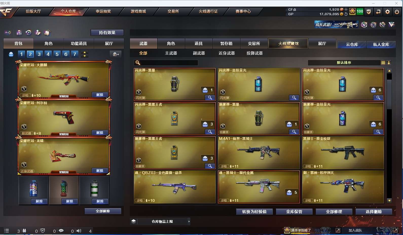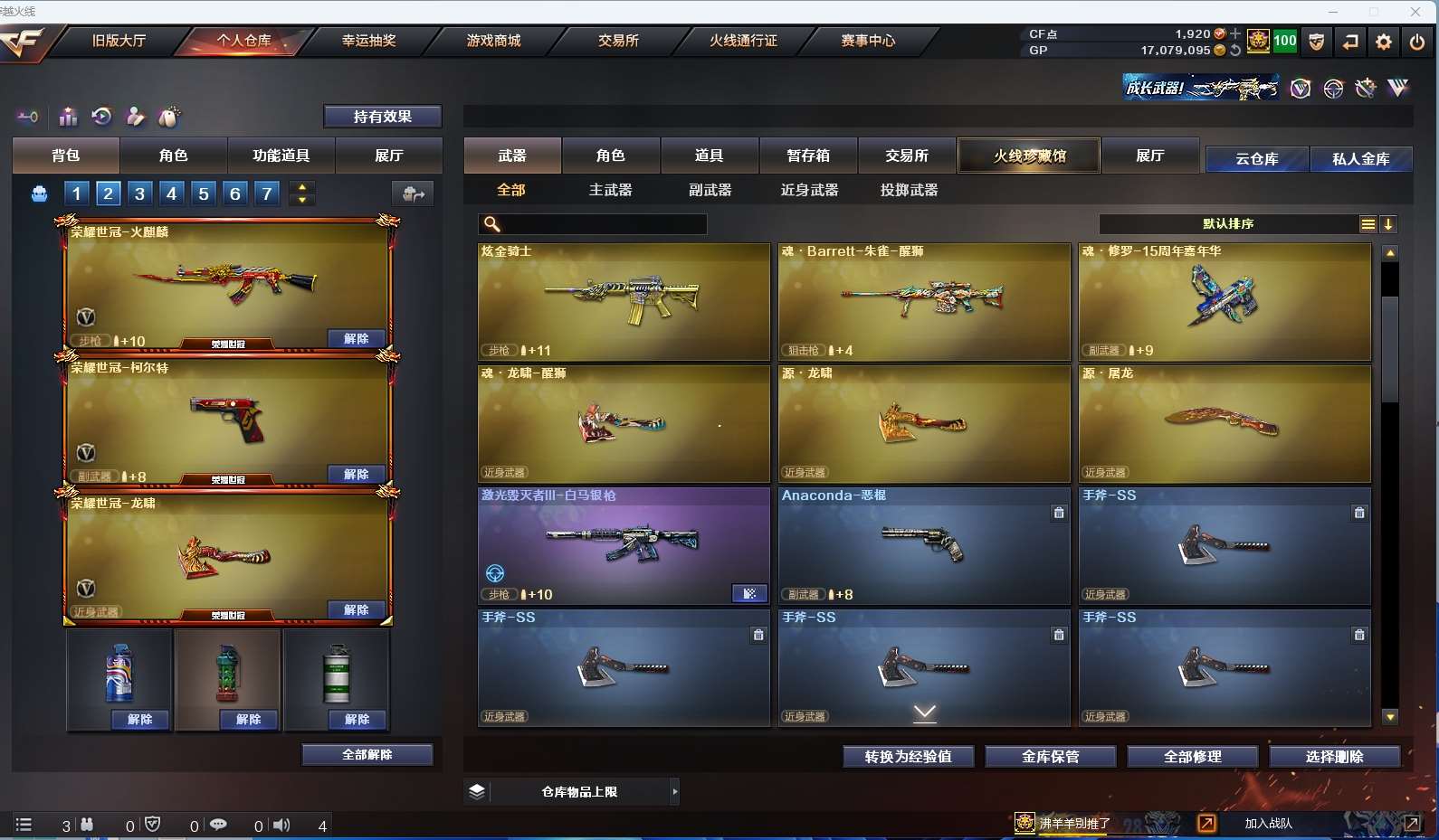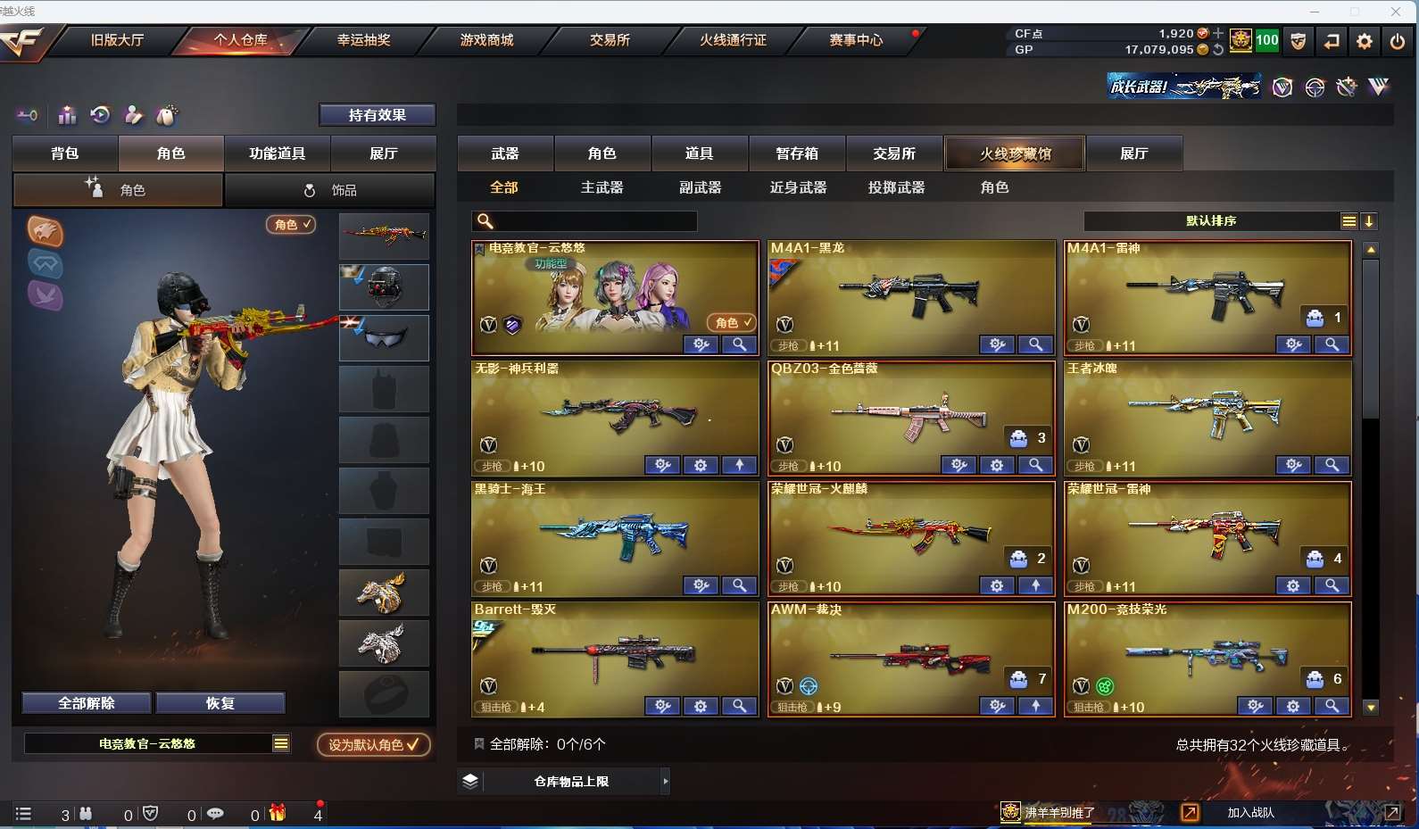 【竞技荣光套+四防云悠悠+usp雷暴】 【qbz金色蔷薇】 【荣耀世冠套】 【黑龙】 【雷神】 【毁灭+冠军之怒】 【裁决】 【王者冰魄】 【无影神兵利器 海王】 【天神 屠龙】 【四防角色 职业经理】 【角色 修道士】 【虎牙炫彩背包 炫彩背包