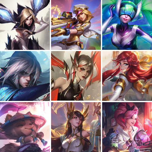 【重要头像】爱意绵绵 爱情之歌 心型钥匙 觅心之翼奎因 战斗学院拉克丝 萨勒芬妮超级巨星 萨勒芬妮独立音乐人 我麦是开的么 神龙尊者艾希 击拳 救生圈 KDA伊芙琳 KDA萨勒芬妮 灵魂莲华阿狸 星守金克丝炫彩 灵魂莲华莉莉娅 灵魂莲华卡西奥佩娅 幼犬内瑟斯 魔女乐芙兰 战斗学院卡特琳娜 北极星神黛安娜 电玩女神凯特琳 电玩女神娑娜 沐浴震惊 战斗学院悠米 战斗学院悠米炫彩 女帝迦娜 可爱安妮 剪纸仙灵艾瑞莉娅 剪纸仙灵艾瑞莉娅炫彩 剪纸仙灵希维尔 绝息圣堂霞 烈焰美人薇恩 披萨鸡 剪纸仙灵婕拉 福运魄罗 战斗学院杰斯 战斗学院伊泽瑞尔 战斗学院永恩 魔女莫甘娜 真实伤害赛娜 真实伤害赛娜炫彩 征服者韦鲁斯炫金 至臻剪纸仙灵希维尔 至臻太空律动璐璐 至臻战斗学院蕾欧娜 至臻福牛守护者菲奥娜 至臻女帝黛安娜 至臻星之守护者索拉卡 至臻KDA卡莎 至臻灵魂莲华提莫 至臻奥术师佐伊 至臻魔女婕拉
