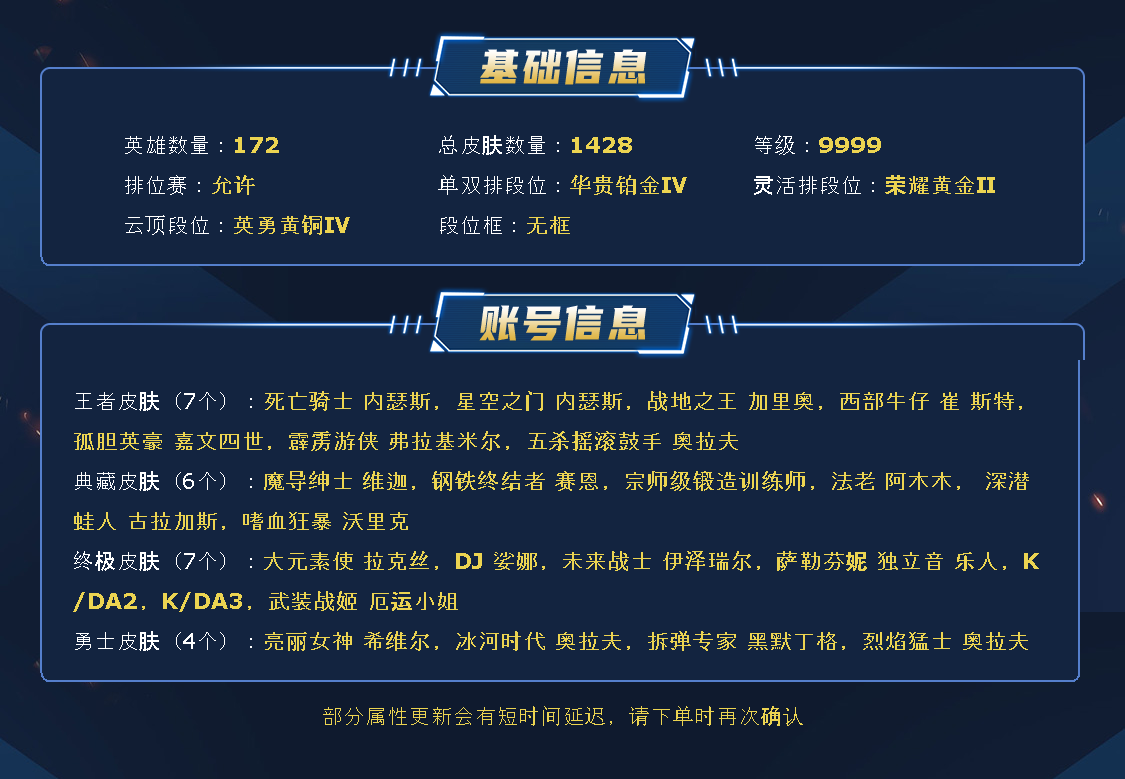 ~~喜欢记得收藏~~可排位~~1306皮全英雄丨80神话/至臻/海克斯丨IG套丨鼠年套丨灵魂莲华套丨FPX套丨KDA套丨创星璐璐丨御星艾希丨替父从军丨勇敢的心丨卧虎藏龙丨羊年金克斯丨西部天使艾希丨甜心霞洛琴女丨玉剑男刀剑姬丨觅心悠米金克斯丨神龙尊者李青艾希丨星守佐伊狐狸风女ez丨电玩女警女枪卡莎人马~~租之前尽量查一下游戏ID,确保段位是您需要的,避免浪费您的时间~~请勿挂机逃跑故意送人头,谢谢合作,谢谢~~