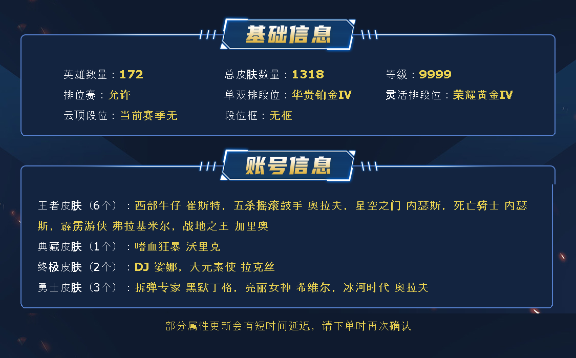 ~~喜欢记得收藏~~可排位~~1189皮全英雄~~租之前尽量查一下游戏ID,确保段位是您需要的,避免浪费您的时间~~请勿挂机逃跑故意送人头,谢谢合作,谢谢~~
