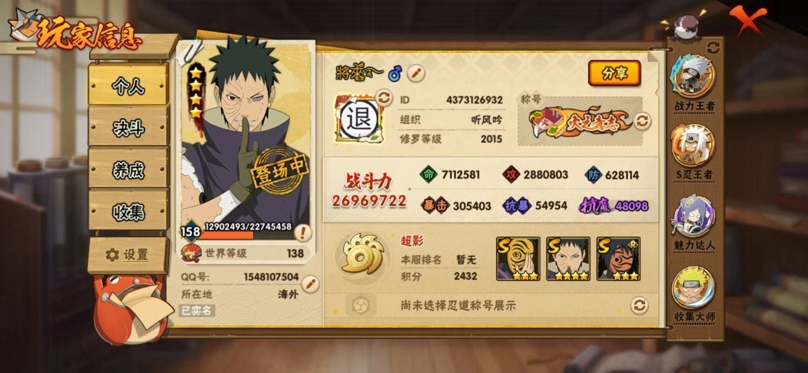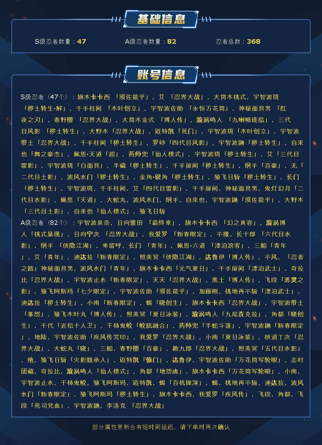 须佐卡卡西 忍战艾 桃式博人 秽土解斑 47S 81A 2900万 漂泊佩恩 侠隐纲手