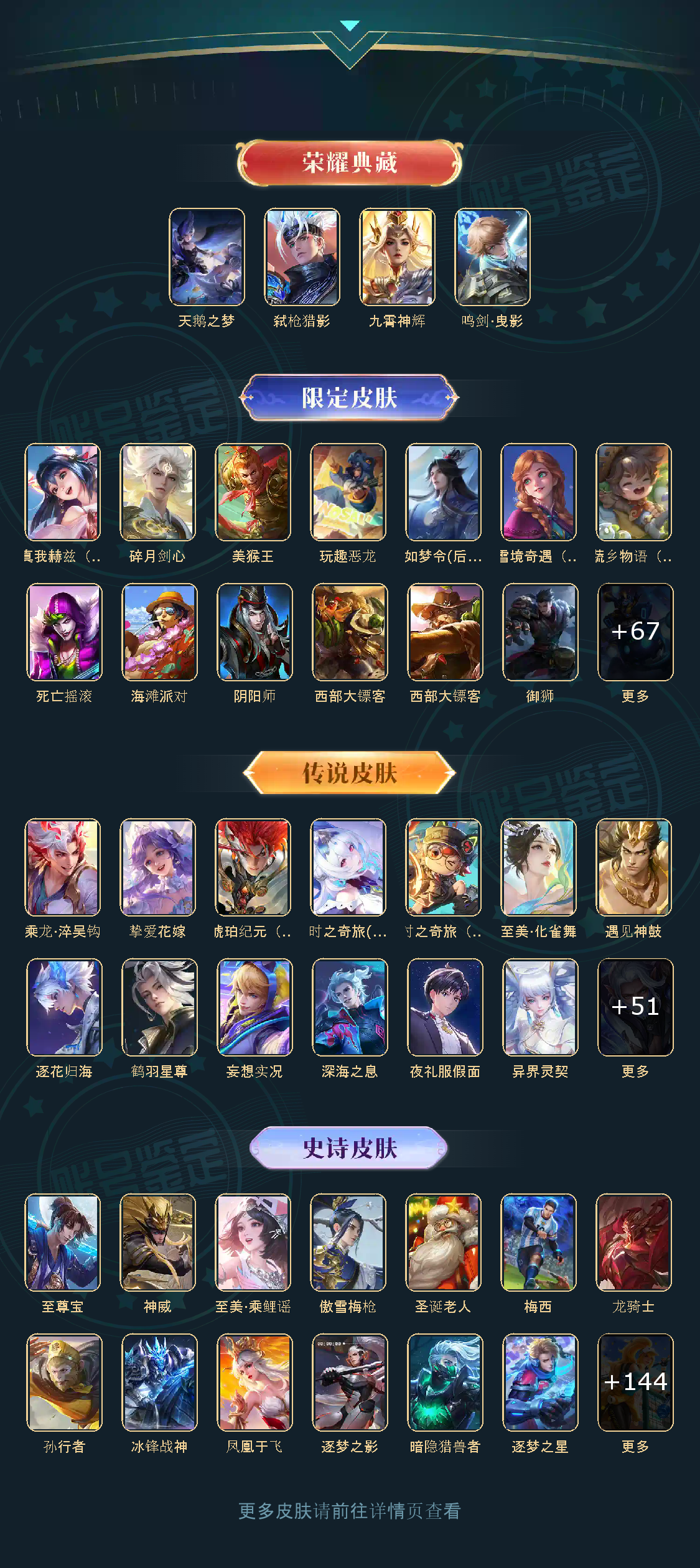 贵族等级V10,英雄数量123,典藏皮肤数4,皮肤数量500,天鹅之梦/鸣剑·曳影
