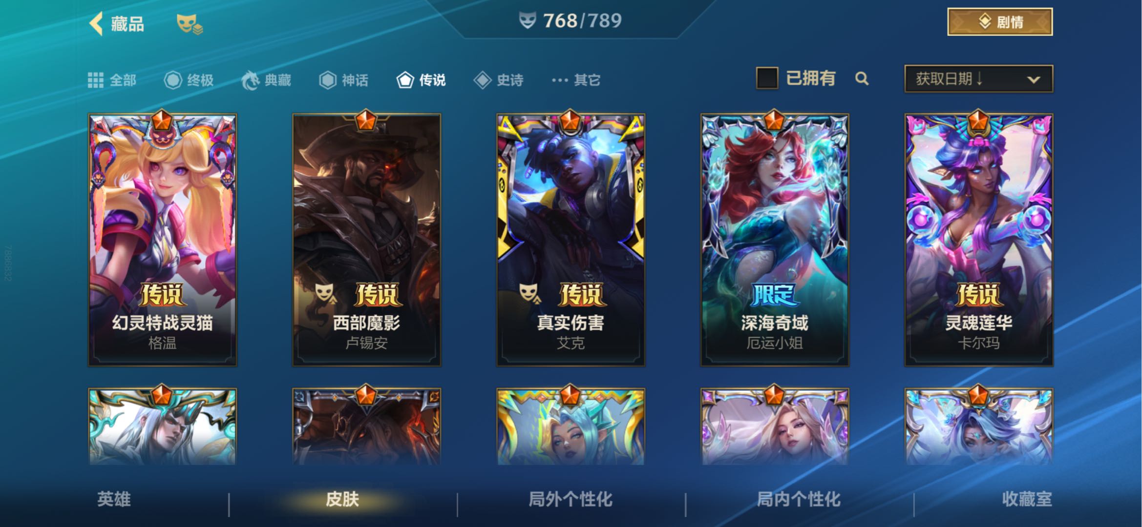 【苹果】 【允许排位】【魂魂】~推荐✨768皮肤16.8万收藏分丨典藏传说神话至臻丨在榜国服收藏家丨历史国服刀妹小鱼狮子狗