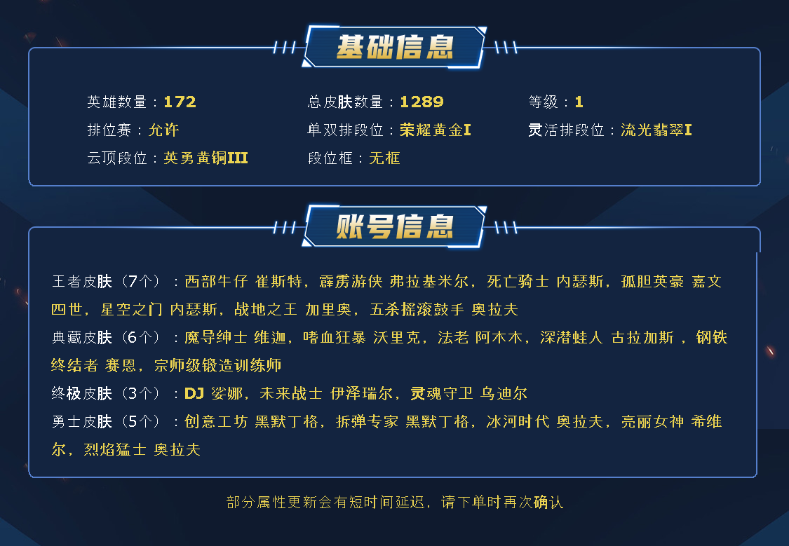~~喜欢记得收藏~~可排位~~1273皮全英雄丨890原皮383炫彩~~租之前尽量查一下游戏ID,确保段位是您需要的,避免浪费您的时间~~请勿挂机逃跑故意送人头,谢谢合作,谢谢~~
