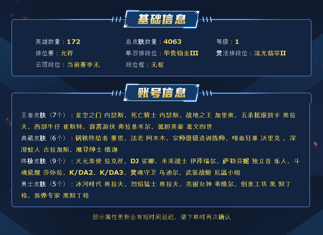 ~~喜欢记得收藏~~可排位~~3839皮全英雄丨1543原皮2296炫彩~~租之前尽量查一下游戏ID,确保段位是您需要的,避免浪费您的时间~~请勿挂机逃跑故意送人头,谢谢合作,谢谢~~