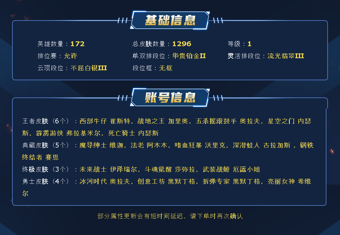 ~~喜欢记得收藏~~可排位~~1071皮全英雄~~租之前尽量查一下游戏ID,确保段位是您需要的,避免浪费您的时间~~请勿挂机逃跑故意送人头,谢谢合作,谢谢~~
