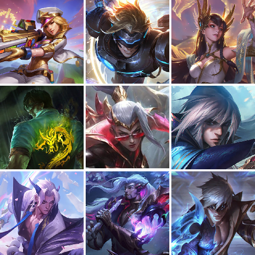 【重要皮肤】莲华温泉厄斐琉斯至臻 灵魂莲华拉克丝至臻 凯旋将军德莱厄斯至臻 至高天凯尔至臻 北极星钢影卡蜜尔至臻 魂蔷薇烈娜塔至臻 斗魂觉醒萨科至臻 墨之影武者亚索至臻 花仙使者卡特琳娜至臻 灵魂莲华易至臻 海珀利安小队X09星环灵风迦娜至臻 星之守护者艾克至臻 海之歌萨勒芬妮至臻 月蚀骑士赛娜至臻 幻灵战斗猫金克丝至臻 青花瓷拉克丝至臻 太空律动璐璐至臻 魔女婕拉至臻 奥术师佐伊至臻 真实伤害亚索至臻 真实伤害赛娜至臻 星之守护者索拉卡至臻 灵能特工伊泽瑞尔至臻 福牛守护者菲奥娜至臻 源计划逆流塞拉斯至臻 王国机神玄武盖伦至臻 暗星墨菲特至臻 神龙尊者炎龙瑟提至臻 黑夜使者凯隐至臻 征服者贾克斯至臻 KDA二代卡莎至臻 KDA一代卡莎至臻 KDA阿狸至臻 KDA伊芙琳至臻 KDA阿卡丽至臻 烈焰美人薇恩至臻 电玩女神凯特琳至臻 星之守护者妮蔻至臻 源计划正义艾瑞莉娅至臻 真实伤害奇亚娜至臻 真实伤害奇亚娜2022至臻 绒毛菲兹至臻 绒毛菲兹2022至臻 未来战士锤石至臻 未来战士锤石2022至臻 黑夜使者李青至臻 黑夜使者李青2022至臻 殿堂传奇薇恩 灰烬骑士派克 灰烬杀手塞拉斯 海克斯科技安妮 海克斯科技瑟庄妮 海克斯科技雷克顿 海克斯科技克格莫 海克斯科技斯维因 海克斯科技吉格斯 海克斯科技波比 新卧虎藏龙贾克斯 水晶圣骑艾希 水晶圣骑蕾欧娜 永恒之森奥恩 暗星科加斯 黎明使者卡尔玛 恐惧新星德莱厄斯 零之枪骑赫卡里姆 摄魂使者薇恩 新创战纪希维尔 胜利之王泰达米尔 胜利巨口克格莫 养蜂人辛吉德 电玩女神厄运小姐 玉剑传说无影 玉剑传说舞剑仙 神凰行者烈羽焰凰霞 海珀利安小队Z01猎户座卢锡安 玉剑传说神机花火 玉剑传说无劫 玉剑传说星仙子 龙的传人李青 剪纸仙灵希维尔 虎头虎脑崔丝塔娜 龙腾虎跃瑟提 替父从军花木兰 神龙烈焰金克丝 古琴余韵娑娜 你看见过我的熊猫吗安妮 美猴王孙悟空 虎痴之拳蔚 张辽文远 烈焰美人薇恩 王国机神苍狼瑟提 王国机神白虎贾克斯 福牛守护者安妮 胜利女神瑟庄妮 胜利枪神卢锡安 胜利之剑亚托克斯 寒冬精灵璐璐 冬季仙境奥莉安娜 圣诞捣蛋鬼金克丝 冰雪风暴希维尔 冬季仙境卡尔玛 持胡萝卜的雪人易 狂心冰王图奇 魄罗骑士瑟庄妮 夺命美人卡特琳娜 平安夜女神娑娜 魅惑女巫厄运小姐 大魔法锅布里茨 海之歌奈德丽 泳池派对凯特琳 泳池派对佐伊 泳池派对格雷福斯 泳池派对蕾欧娜 泳池派对雷克顿 电玩战魂赫卡里姆 斩星魔剑易 克格汪 制胜金靴李青 FPX墨菲特 SSG洛 SSG嘉文四世 SKTT1烬 SKTT1辛德拉 SKTT1娜美 SKTT1艾克 SKTT1阿利斯塔 SKTT1卡莉丝塔 SKTT1伊莉丝 SSW锤石 SSW泰隆 SSW图奇 SSW辛吉德 SKTT1贾克斯 SKTT1婕拉 暗杀星蒙多 Fnatic迦娜 Fnatic库奇 Fnatic古拉加斯 冰雪节格雷福斯 冰雪节玛尔扎哈 冰雪节辛吉德 防暴士兵辛吉德 防暴天使凯尔 钢铁之翼艾尼维亚 冠军典狱长锤石 冠军掠夺者卡兹克 冠军之刃锐雯2016 冠军之隐劫 鬼影森森茂凯 鬼影重重魔腾 海贼瑞兹 胡桃夹子萨科 警用试作体K9内瑟斯 密林猎手提莫 南瓜头费德提克 圣诞精灵崔丝塔娜 圣诞开心鬼提莫 圣诞狂欢基兰 圣诞狂欢努努和威朗普 圣诞老人古拉加斯 圣诞玩偶波比 圣诞驯鹿克格莫 糖果使徒费德提克 外星装甲库奇 无头骑士赫卡里姆 喜庆之树茂凯 邪恶圣诞老人维迦 幸福女神乐芙兰 雪默丁格 野兽猎人德莱文 野兽猎人瑟庄妮 野兽猎人泰达米尔 英勇玩具兵普朗克 征服者阿利斯塔 暗影沃里克 冠军之箭艾希 阿木木主人不要我了 波比的巧克力工坊 都铎王朝图奇 十周年纪念安妮 源代码乐芙兰 神凰行者瑞羽圣凰艾尼维亚 胜利凤凰艾尼维亚 斗魂觉醒莎弥拉 未来战士伊泽瑞尔 武装战姬厄运小姐 绝息圣堂洛 魔女娜美