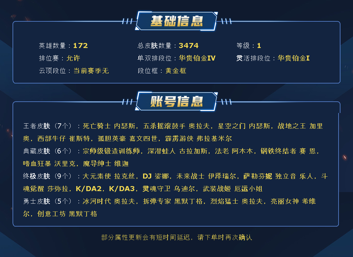 温馨提示:此账号为快速.上号模式登录,不需要输入账号密码,租用后- -键登录即可,如果出现登录异常等无法登录情况,只需要先打开游戏到登录界面,然后在用租号玩一键登录即可。 安全提示:使用外挂恶意刷分、撤单或者恶意投诉差评大将永久拉黑处理,请文明游戏 小子在这祝您游戏愉快,好运常在。喜欢的点击收藏▼记得给小子个五星好评呦▼