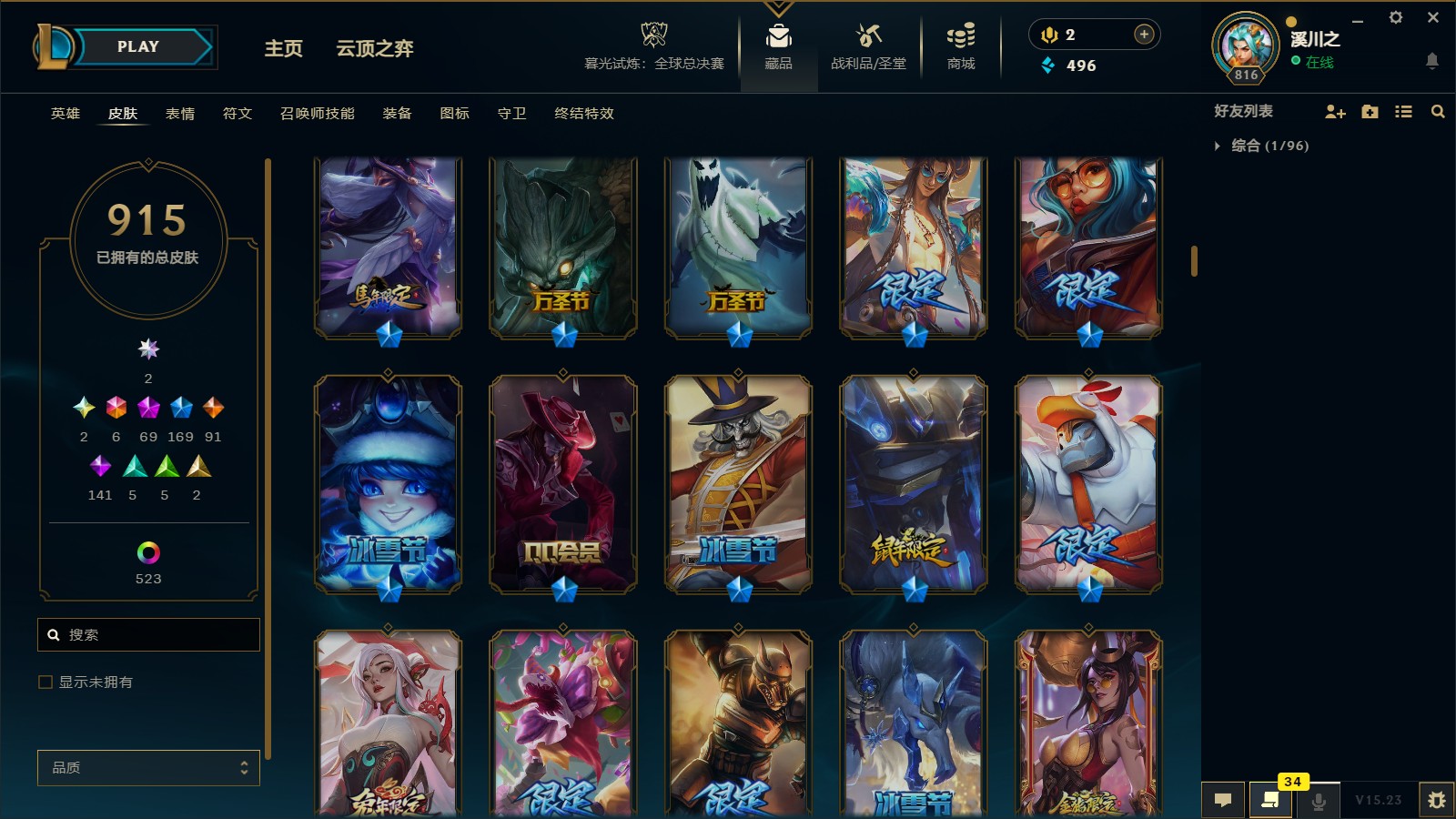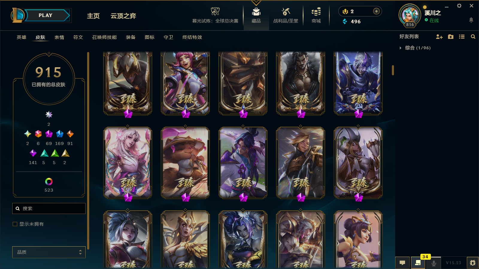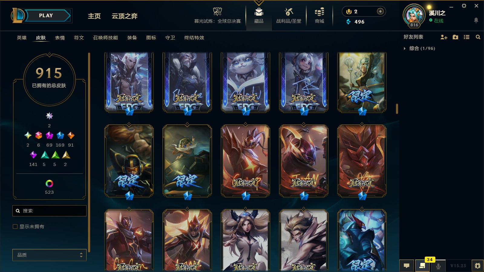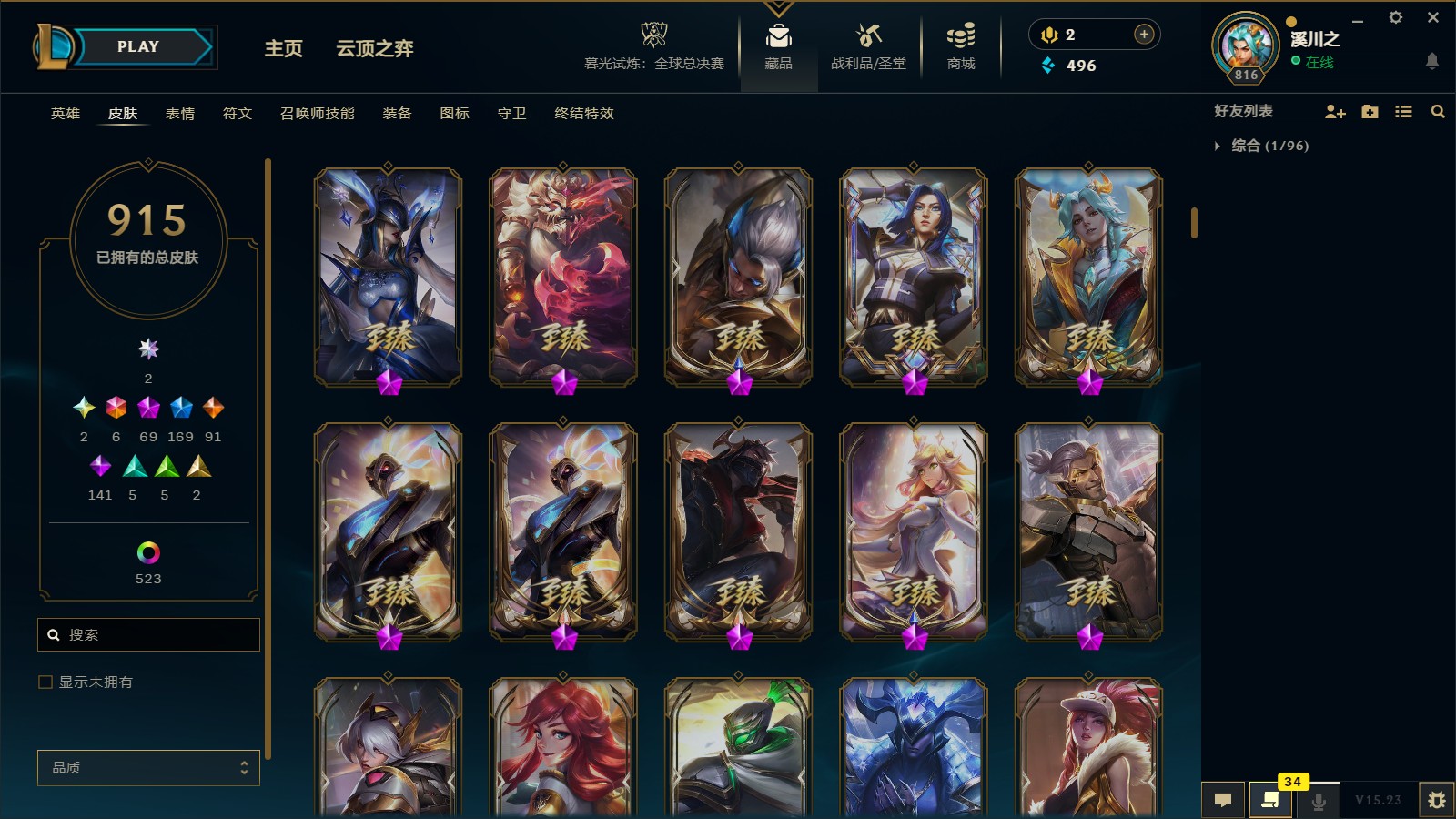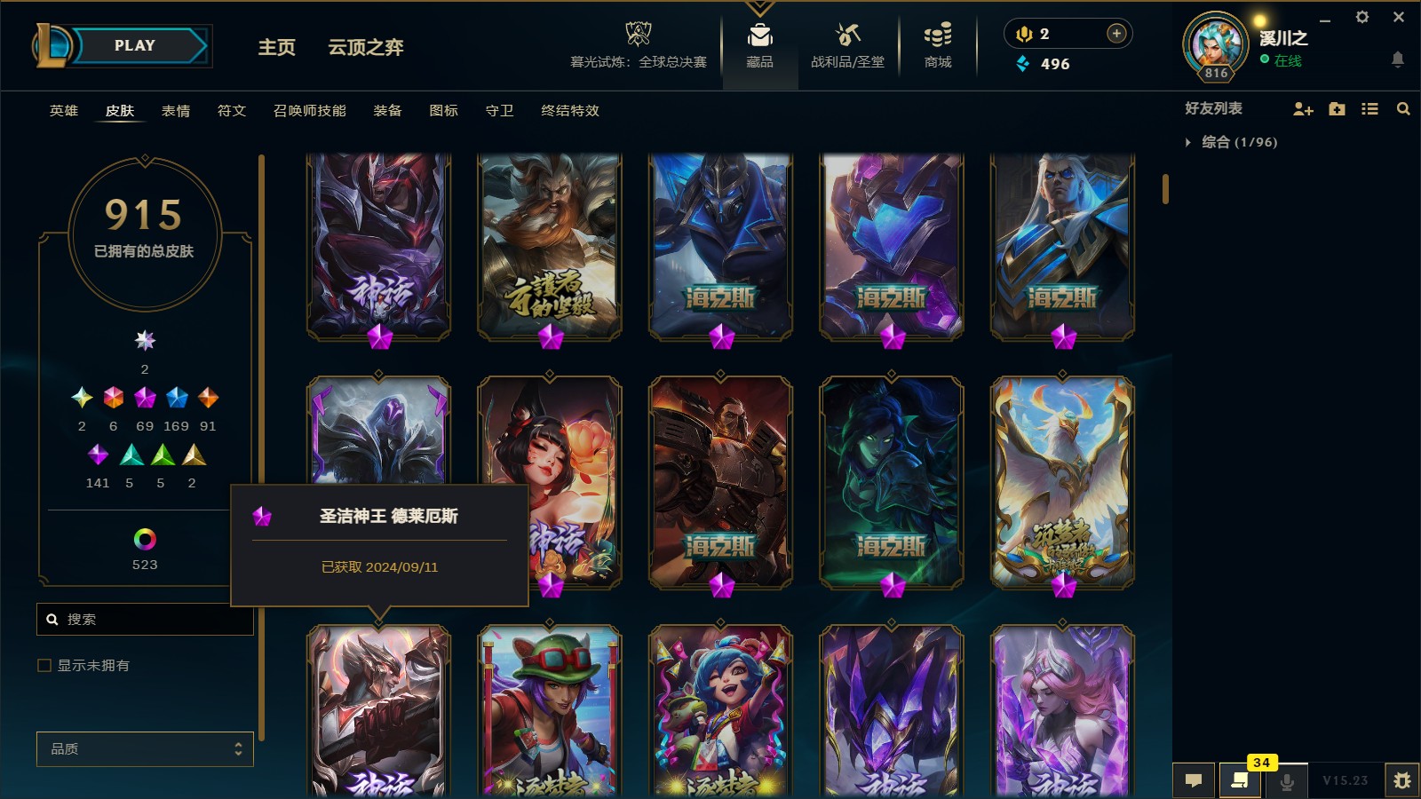 1511皮丨70神话丨5氪金皮 圣堂铁男 腕豪丨神话幻想狐狸 诺手 盖伦丨殿堂狐狸卡莎丨云顶神话发条