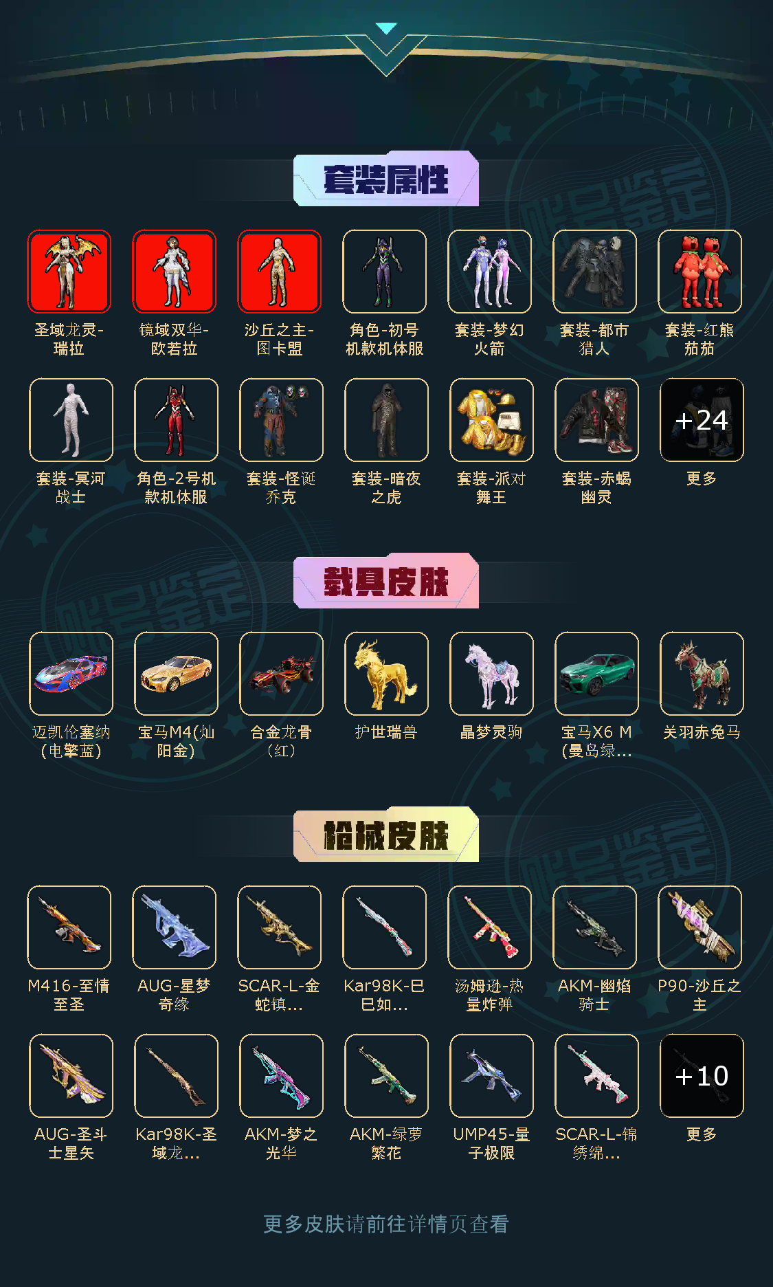 30粉,7载具,247套装,17王牌印记,无敌战神历史最高段,164496热力值 撬棍-永恒法杖/Vector-绯穹魔姬/镰刀-幽影之判/蜜獾-荧海星豚/AUG-星梦奇缘/AKM-绿萝繁花/M416-风花雪月/AKM-幽焰骑士/AUG-圣斗士星矢/GROZA-精灵之光/SCAR-L-锦绣绵绵/M416-至情至圣/SCAR-L-金蛇镇世/AKM-梦之光华/DP-28-圣堂之誓/DP-28-千金淑猫/DP-28-豹影疾电/UMP45-量子极限/AKS-74U-星穹咏叹调/汤姆逊-热量炸弹/P90-沙丘之主/破片手榴弹-热量炸弹/烟雾弹-猫咪绅士/Kar98K-圣域龙灵/Kar98K-巳巳如意/宝马M4(灿阳金)/宝马X6 M(曼岛绿)/合金龙骨(红)/迈凯伦塞纳(电擎蓝)/护世瑞兽/关羽赤兔马/晶梦灵驹/
