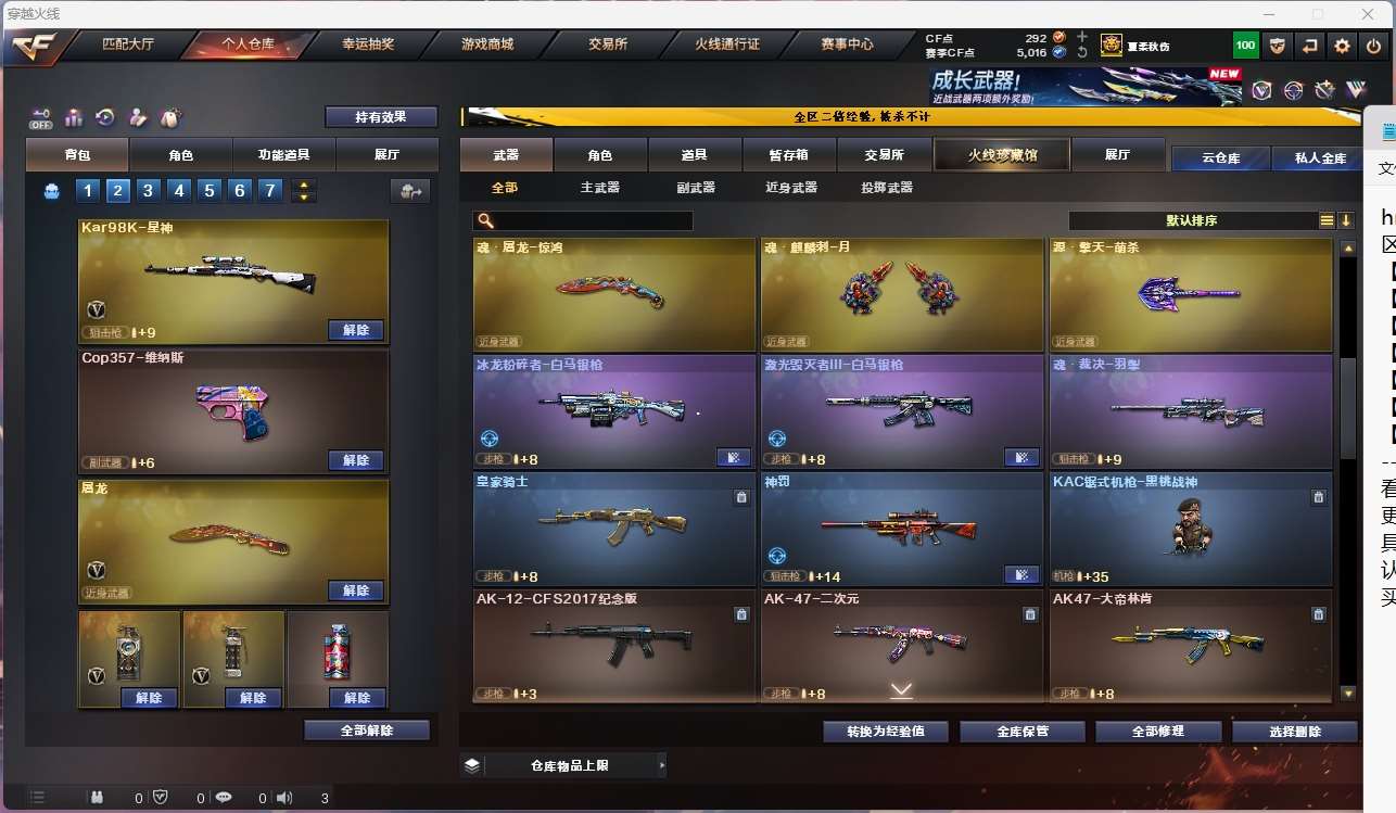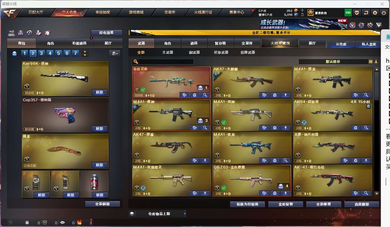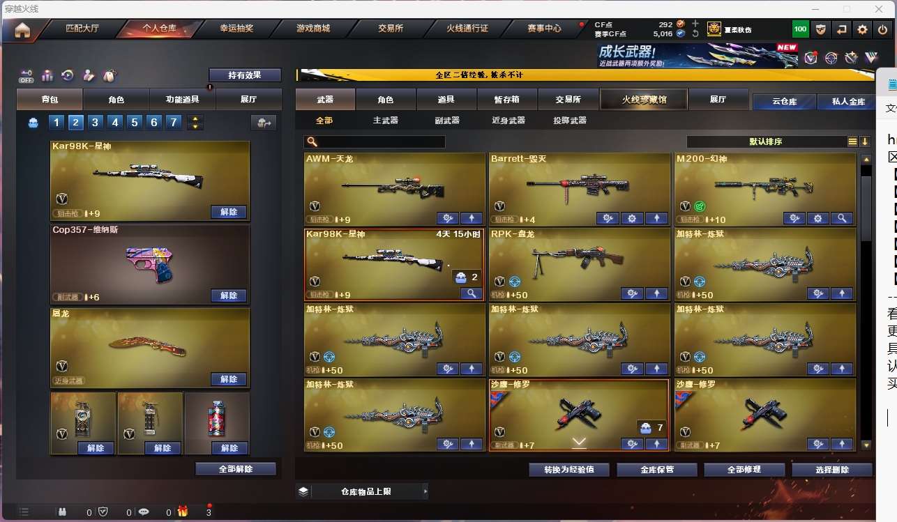 【传说灵眸】【m200幻神】【盘龙 炼狱*5】【qbz金色蔷薇】 【武器:火麒麟 黑龙 雷神 死神 青龙 毁灭 】 【7手呛:修罗*6 天神】 【7刀具:屠龙*3 龙啸 擎天 麒麟刺 神工天巧 】 【雷套:神工天巧雷*2】 【小人呛:天龙乔伊教练 】 【四防角色:职业经理 】
