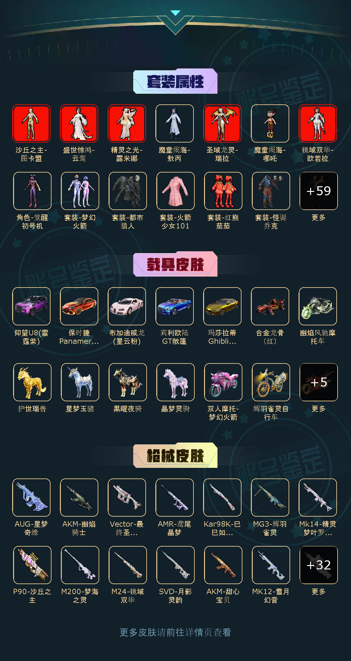 100粉,100载具,100特效枪,400套装,30王牌印记 UZI-绮梦青鸾/AKM-甜心宝贝/DP-28-扶摇飞仙/SCAR-L-梦幻火箭/SCAR-L-童趣迷兔/Kar98K-伏魔团/SKS-碧影闪光/M416-风花雪月/AUG-星之彼岸/SCAR-L-甜梦小狐/AWM-花间之火/M762-甜心娃娃/汤姆逊-怪笑疯兔/AWM-焰龙焚天/Vector-红伞翩翩/SKS-诡面斩/MG3-炙焰牛王/M762-激战未来/GROZA-香水柠檬/AWM-橘柚倾心/M416-心之恋语/平底锅-林间仙鹿/M16A4-葫芦兄弟/Mini14-荧光虫舞/M416-五爪金龙/M24-暗星紫秘/DP-28-枪炮玫瑰/DP-28-幻梦音符/AKM-炫紫旋律/Mini14-绚金瑰梦/MG3-洛神天依/GROZA-焦糖拿铁/SCAR-L-青春物语/M249-古战神甲/M762-冷魅冰骑/AKM-百合蜜语/UZI-筑梦精灵/SLR-暗夜玫瑰/S12K-海渊国主/VSS-烈焰拳霸/Kar98K-暗翼战神/UMP45-雪国精灵/M762-甜蜜誓约/UMP45-相思残雪/SCAR-L-机甲封神/M24-星之信仰/UMP45-恐龙拽拽/Mini14-龙虾霸霸/M249-蓝莓炮弹/野牛-流星咚咚/AKM-梦之光华/Kar98K-绿意幻情/路特斯EVIJA(星际黄)/兰博基尼Aventador(翡翠绿)/玛莎拉蒂Ghibli(金)/萌喵橘座/双人摩托-双刃魅影(绿)/阿斯顿·马丁DBX(橙)/特斯拉Model X(珍珠白)/俏皮小熊猫/路特斯ELETRE(冰川蓝)/兰博基尼URUS(炫光金)/特斯拉Roadster(尊享铂)/快艇-自由的鲸/海龙奔腾/特斯拉Roadster(沁心粉)/特斯拉Model 3(珍珠白)/玛莎拉蒂Ghibli(蓝)/阿斯顿·马丁DBS(红)/双人摩托-梦幻火箭/兰博基尼URUS(尊享铂)/特斯拉Model X(奇幻紫)/特斯拉Cybertruck(极昼黑)/特斯拉Cybertruck(荒芜蓝)/兰博基尼Estoque(炫光金)/金龙耀世/快艇-塞莎KL27(深潜蓝)/焰龙咆哮/兰博基尼URUS(明艳黄)/快艇-塞莎KL27(霓虹粉)/特斯拉Cybertruck(镭光铂)/双人摩托-双刃魅影(红)/兰博基尼Estoque(银翼灰)/双人摩托-双刃魅影(金)/合金龙骨(蓝)/灵鼠银迹/阿斯顿·马丁DBS(绿)/阿斯顿·马丁DBX(金)/特斯拉Model 3(奇幻紫)/特斯拉Model 3(冷光银)/合金龙骨(绿)/特斯拉Roadster(水滴蓝)/阿斯顿·马丁DBS(金)/路特斯ELETRE(花绽灰)/极速兔兔/鬼马风驰/南瓜骑士/合金龙骨(红)/兰博基尼Estoque(尊享铂)/玛莎拉蒂Ghibli(粉)/兰博基尼SVJ(尊享铂)/兰博基尼SVJ(炫光金)/软萌羊咩咩/快艇-塞莎KL27(鲸之蓝)/阿斯顿·马丁DBX(蓝)/特斯拉Model X(冷光银)