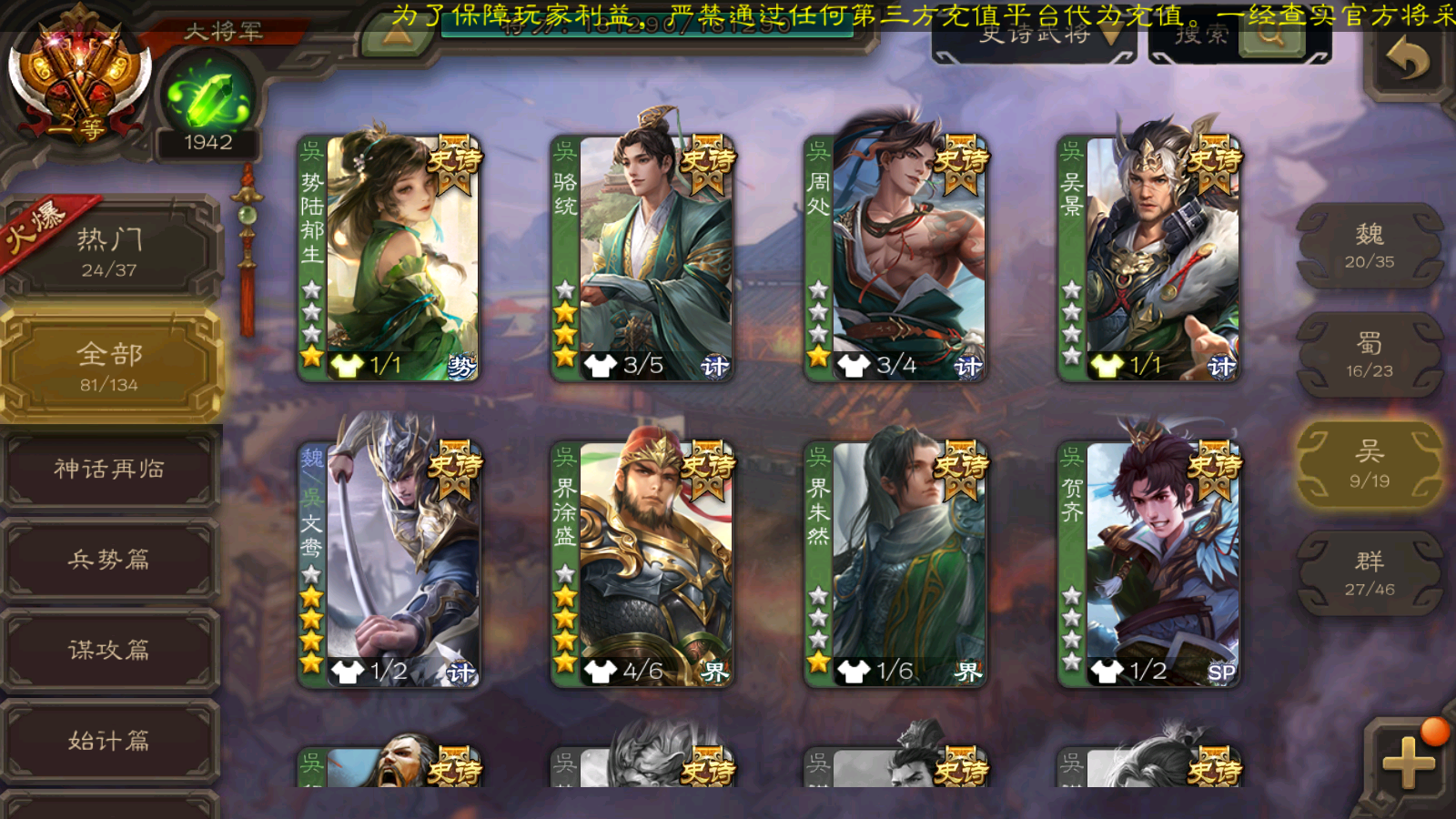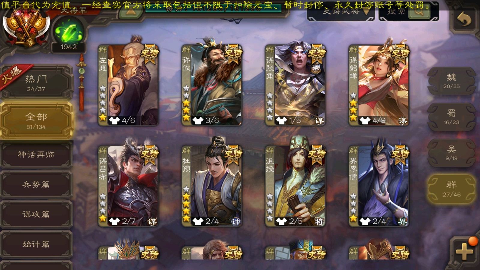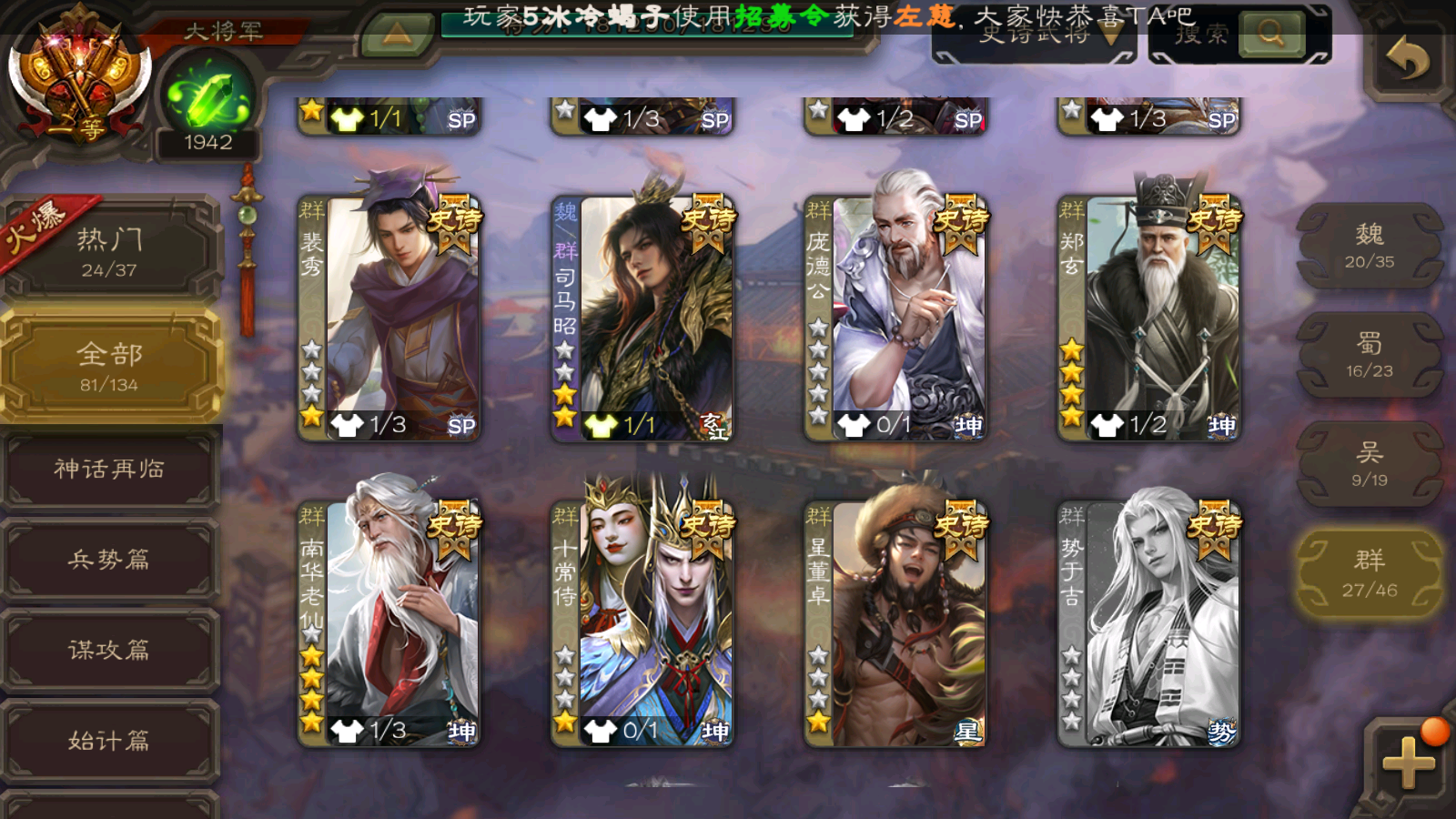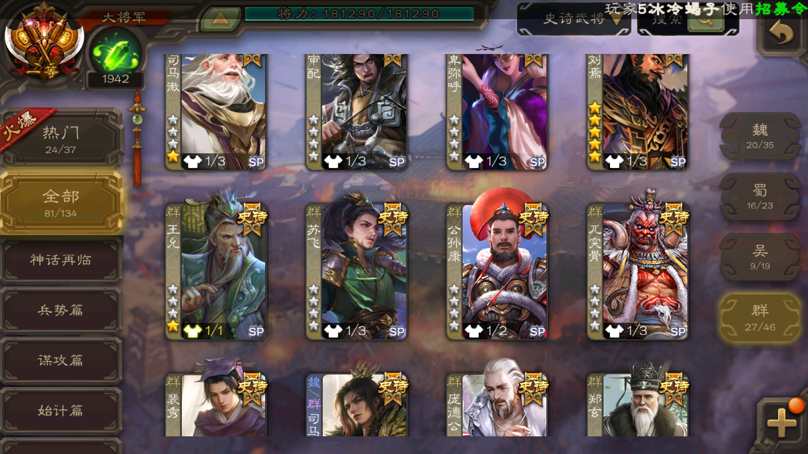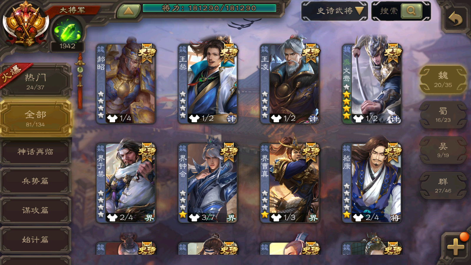 【全平台】 【锦鲤有卡】三卡一等81史诗势魏延动刘焉曹髦回廊钟会司马昭势陆郁生十常侍回廊神荀彧动神司马