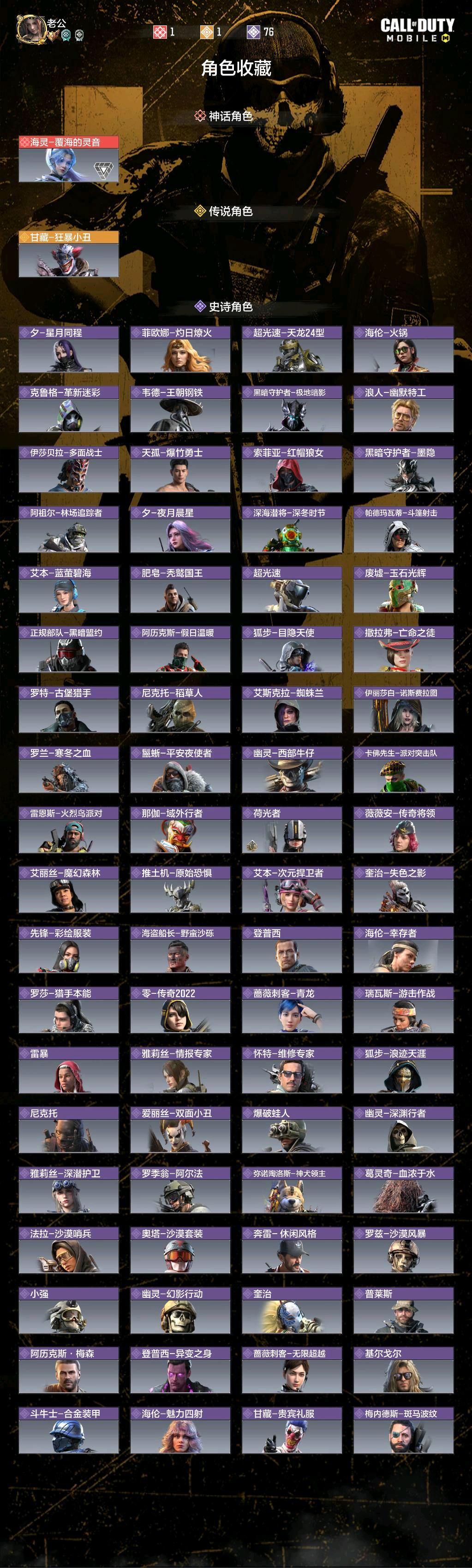 - 传说角色: 11