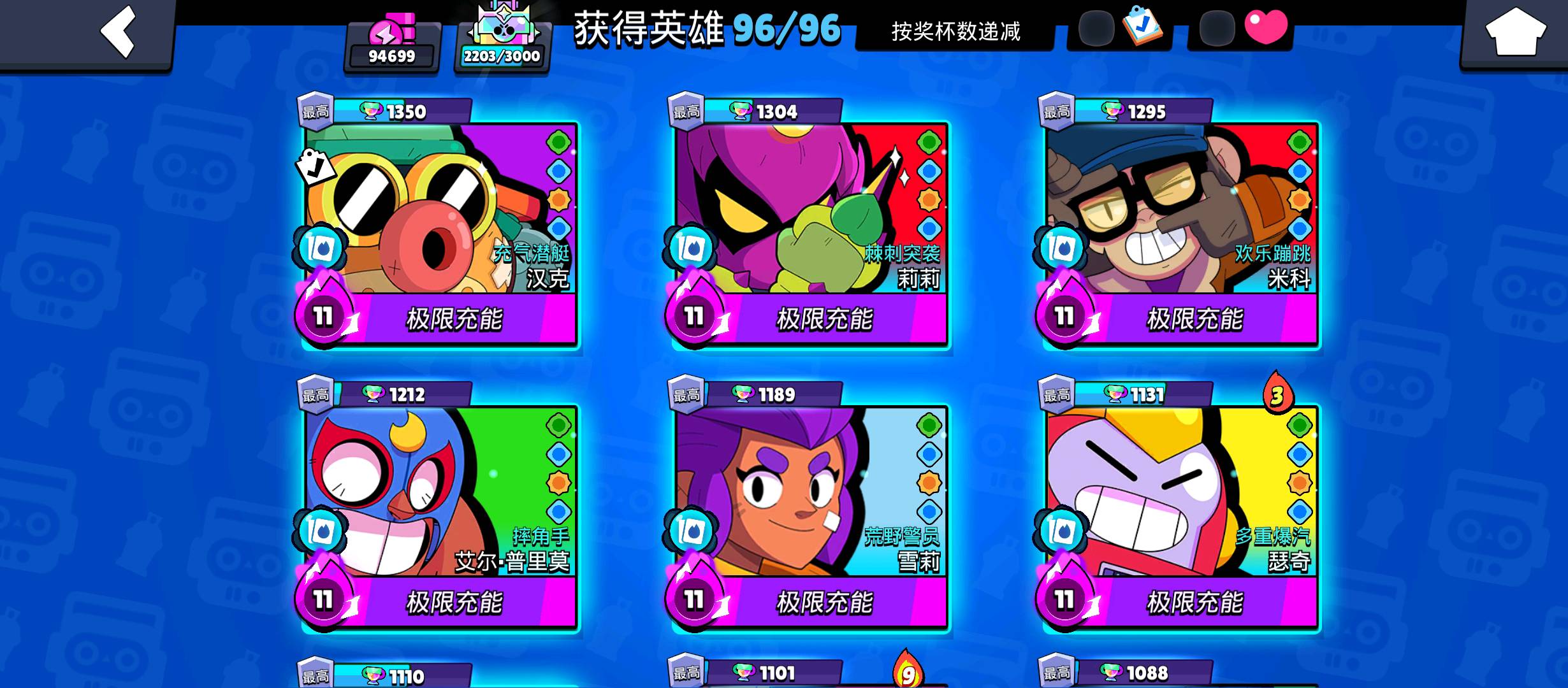 【安卓】 荒野乱斗 全英雄🍀全满级 🏹全极冲 🚀几百个皮肤每个英雄都有⛵️ 九万五千多杯