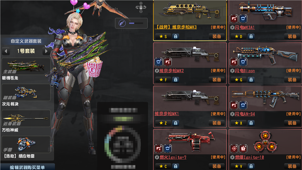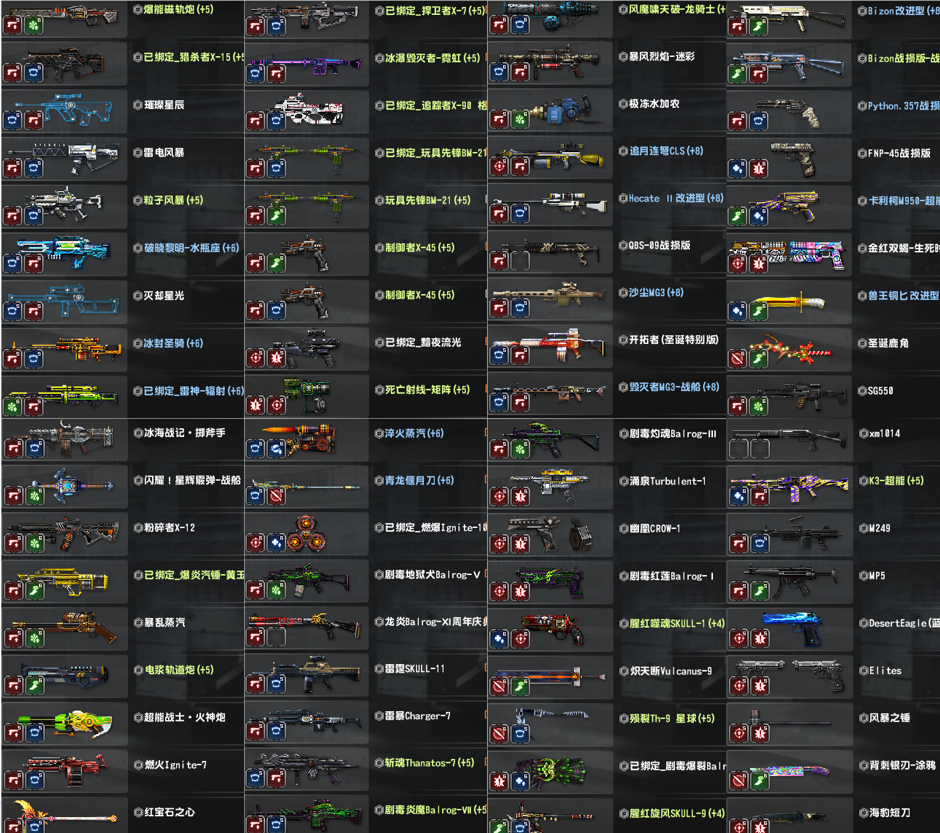 3.更新:天巡1,2,5,怀旧三件套金红双蝎黑龙炮斧头!三闪电MK3A1汽锤气锤野牛94。赛季武器有第11,12,14(为期限)17,18,21赛季!维京全套!主要配件武器6阶,其他最少5阶,强化武器全满!