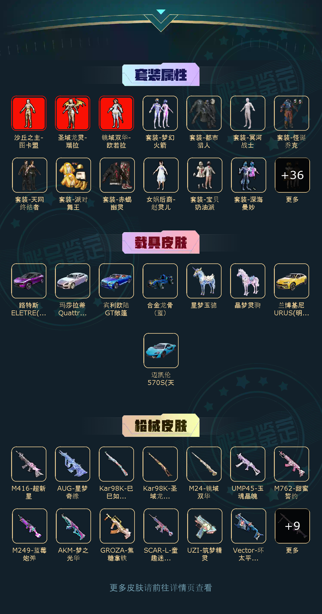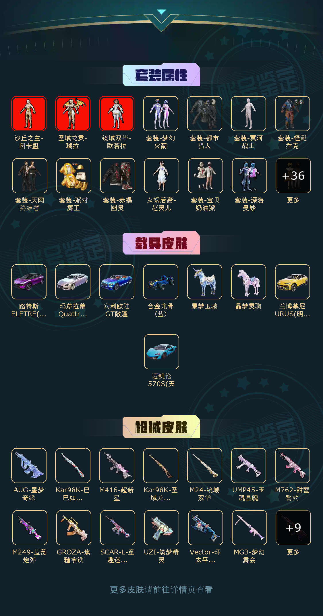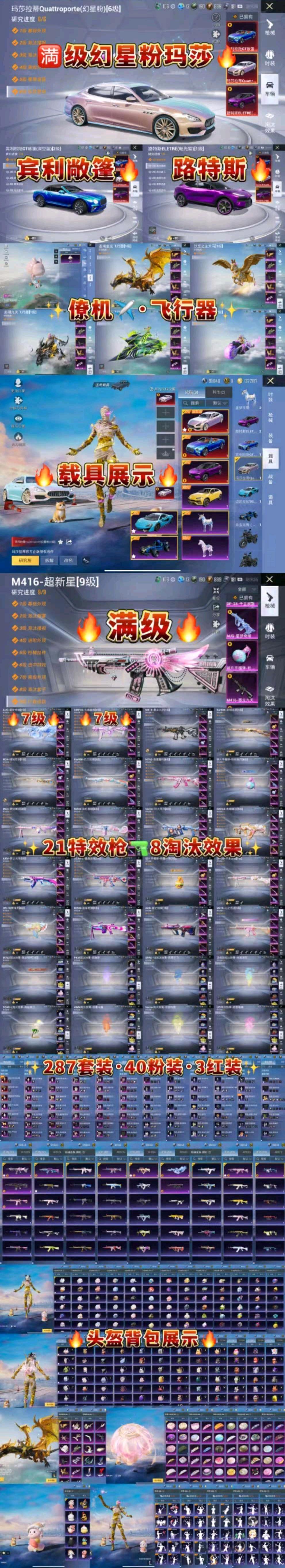 100粉,100载具,100特效枪,400套装,30王牌印记 UZI-绮梦青鸾/AKM-甜心宝贝/DP-28-扶摇飞仙/SCAR-L-梦幻火箭/SCAR-L-童趣迷兔/Kar98K-伏魔团/SKS-碧影闪光/M416-风花雪月/AUG-星之彼岸/SCAR-L-甜梦小狐/AWM-花间之火/M762-甜心娃娃/汤姆逊-怪笑疯兔/AWM-焰龙焚天/Vector-红伞翩翩/SKS-诡面斩/MG3-炙焰牛王/M762-激战未来/GROZA-香水柠檬/AWM-橘柚倾心/M416-心之恋语/平底锅-林间仙鹿/M16A4-葫芦兄弟/Mini14-荧光虫舞/M416-五爪金龙/M24-暗星紫秘/DP-28-枪炮玫瑰/DP-28-幻梦音符/AKM-炫紫旋律/Mini14-绚金瑰梦/MG3-洛神天依/GROZA-焦糖拿铁/SCAR-L-青春物语/M249-古战神甲/M762-冷魅冰骑/AKM-百合蜜语/UZI-筑梦精灵/SLR-暗夜玫瑰/S12K-海渊国主/VSS-烈焰拳霸/Kar98K-暗翼战神/UMP45-雪国精灵/M762-甜蜜誓约/UMP45-相思残雪/SCAR-L-机甲封神/M24-星之信仰/UMP45-恐龙拽拽/Mini14-龙虾霸霸/M249-蓝莓炮弹/野牛-流星咚咚/AKM-梦之光华/Kar98K-绿意幻情/路特斯EVIJA(星际黄)/兰博基尼Aventador(翡翠绿)/玛莎拉蒂Ghibli(金)/萌喵橘座/双人摩托-双刃魅影(绿)/阿斯顿·马丁DBX(橙)/特斯拉Model X(珍珠白)/俏皮小熊猫/路特斯ELETRE(冰川蓝)/兰博基尼URUS(炫光金)/特斯拉Roadster(尊享铂)/快艇-自由的鲸/海龙奔腾/特斯拉Roadster(沁心粉)/特斯拉Model 3(珍珠白)/玛莎拉蒂Ghibli(蓝)/阿斯顿·马丁DBS(红)/双人摩托-梦幻火箭/兰博基尼URUS(尊享铂)/特斯拉Model X(奇幻紫)/特斯拉Cybertruck(极昼黑)/特斯拉Cybertruck(荒芜蓝)/兰博基尼Estoque(炫光金)/金龙耀世/快艇-塞莎KL27(深潜蓝)/焰龙咆哮/兰博基尼URUS(明艳黄)/快艇-塞莎KL27(霓虹粉)/特斯拉Cybertruck(镭光铂)/双人摩托-双刃魅影(红)/兰博基尼Estoque(银翼灰)/双人摩托-双刃魅影(金)/合金龙骨(蓝)/灵鼠银迹/阿斯顿·马丁DBS(绿)/阿斯顿·马丁DBX(金)/特斯拉Model 3(奇幻紫)/特斯拉Model 3(冷光银)/合金龙骨(绿)/特斯拉Roadster(水滴蓝)/阿斯顿·马丁DBS(金)/路特斯ELETRE(花绽灰)/极速兔兔/鬼马风驰/南瓜骑士/合金龙骨(红)/兰博基尼Estoque(尊享铂)/玛莎拉蒂Ghibli(粉)/兰博基尼SVJ(尊享铂)/兰博基尼SVJ(炫光金)/软萌羊咩咩/快艇-塞莎KL27(鲸之蓝)/阿斯顿·马丁DBX(蓝)/特斯拉Model X(冷光银)