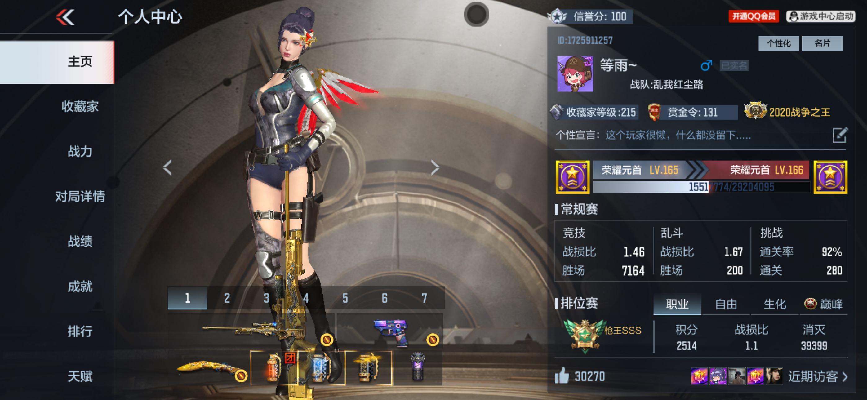 - 职业排位段位: 枪皇