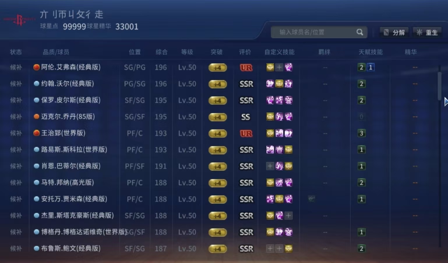 最新SSR佩贾,UR姚明UR麦迪UR甜瓜UR乌鸡UR卡特,ss经典科比、上将、威尔金斯、司机,UR艾弗森UR王治郅等