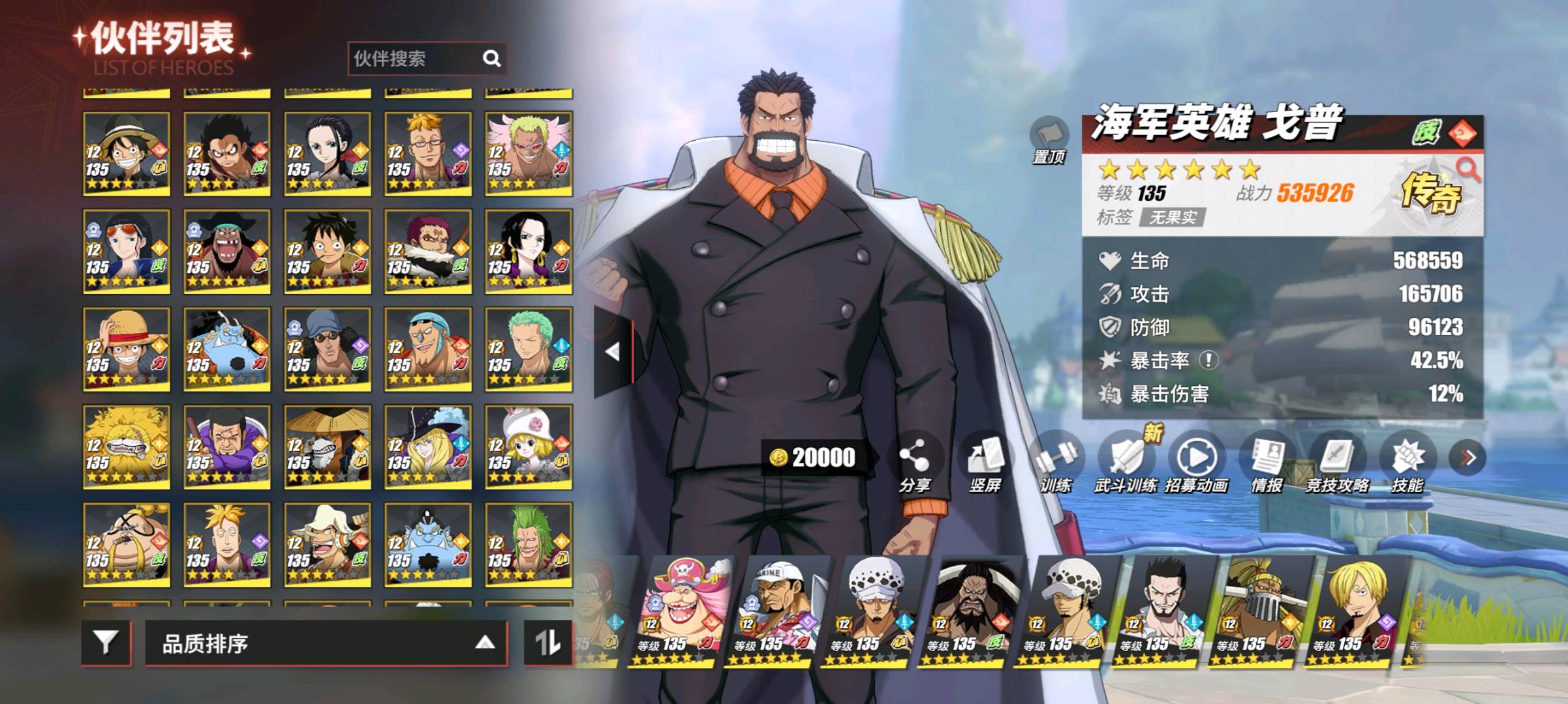 官服♥炎帝萨博♥青年卡普♥5个98友情♥150个角色♥除了英雄克比和白衣路奇之外,其他的都有
