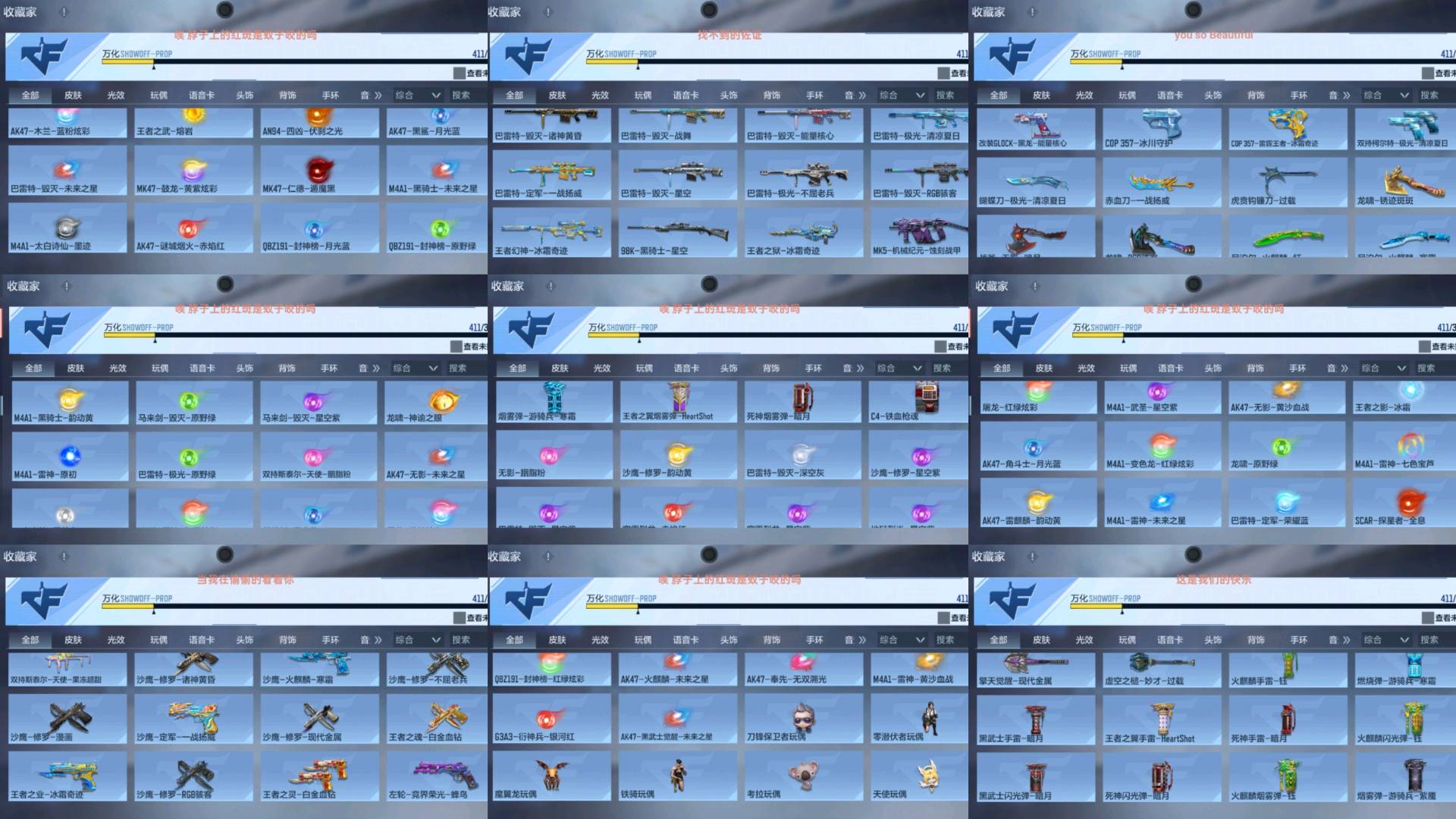 配置页一星象奉先定军威侯元让文远仁德全套装,配置页二王武王心王影王圣套王幻王擎巴雷特雷霆王者,配置页三生化霸王龙王者雷霆喷子本初套散弹枪子弹拉满,配置页四挑战本初九尾狐中康套天公孟获秒才盖,配置页5生化机枪子弹拉满王者炼狱丶95螳螂,巴雷特雷霆王者,双脊龙王者之蝶冲锋枪子弹拉满,7把雷霆尼泊尔高跳,生化角色刀锋,竞技角色蔡文招,步练师,挑战祝融夫人,还有冰皮,狙击枪线皮肤乱七八糟音效卡一大堆,反正就是能爽玩全模式,畅通无阻。cop5把