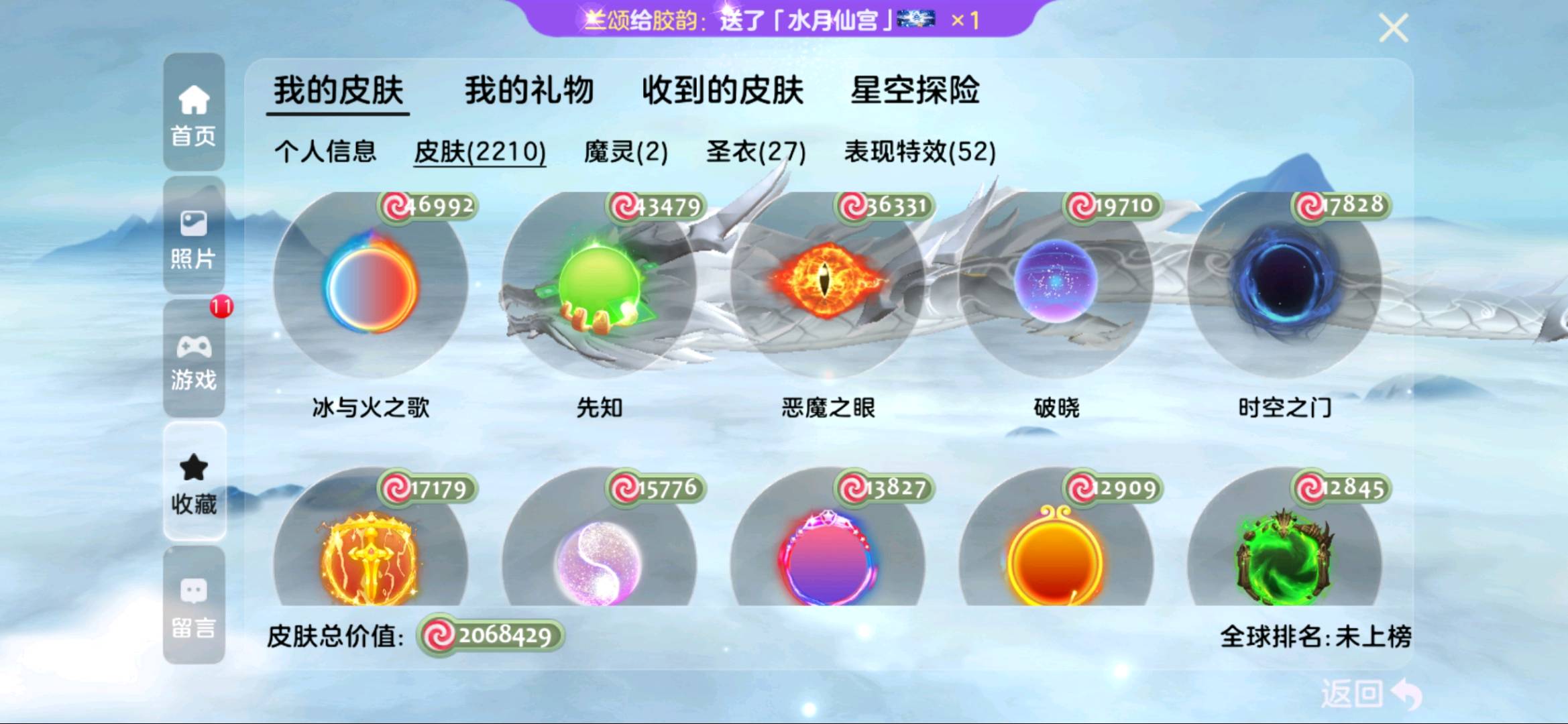 【全平台】 满赛季3508排名,嘉年华,有魔星战士,丘比特,阿芙娜各种稀有皮肤