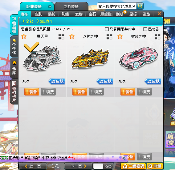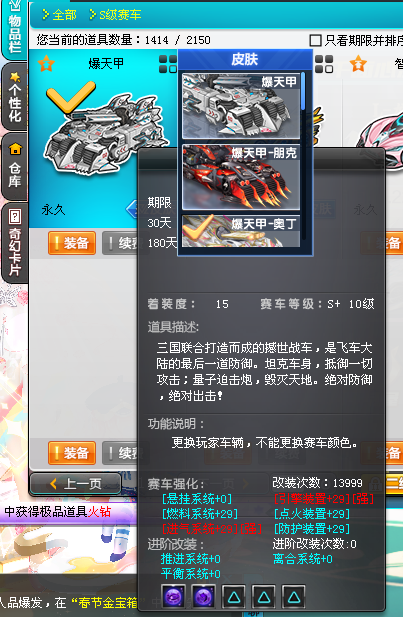 等级】201 【魅力】13753 【S车】爆天甲 众神之神 智慧之神 【T1车】朱雀 【A车】春日部